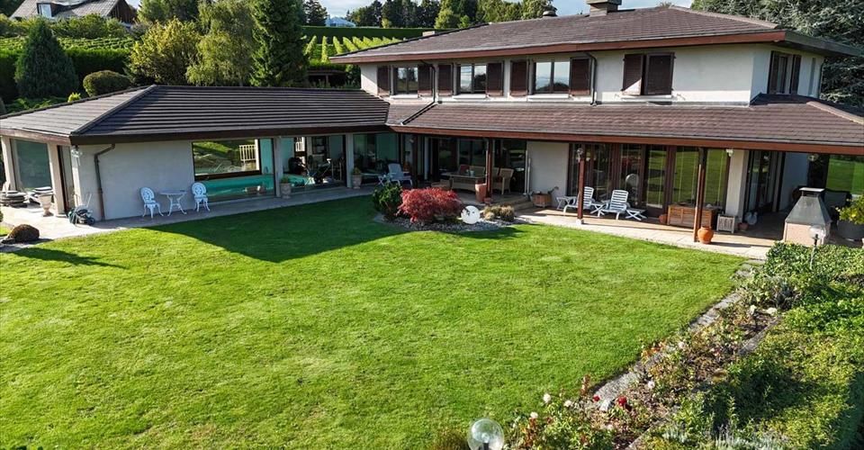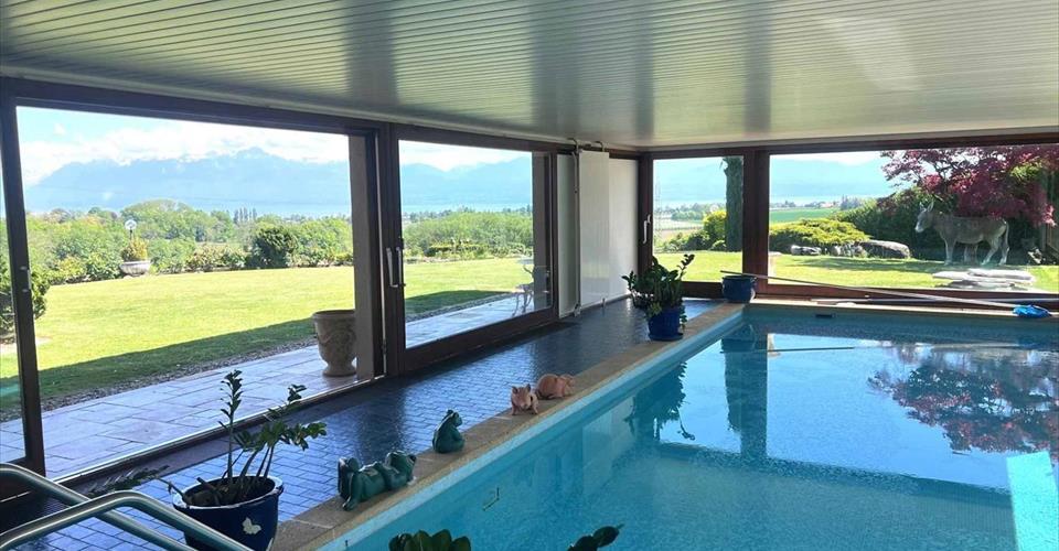 BARNES MORGES vous propose cette villa de 7.5 pièces à la situation unique due par son emplacement au cœur des vignes sur les hauteurs de Morges. Cette maison aux volumes généreux (1’883m³) vous séduira avec sa vue panoramique sur le lac et le château de Vufflens, ses pièces bien pensées, sa belle piscine intérieure, son jardin bien arboré avec arrosage automatique et sans vis-à-vis, ses espaces cosy. La villa de 240m² habitables (480m² utiles) est implantée sur une belle parcelle de 2’222m² à l’abri de tous les regards. La maison dispose de 3 chambres à coucher, mais pourrait facilement accueillir une 4ème chambre à l’étage, d’un magnifique séjour avec sa majestueuse cheminée en pierre, d’une vaste cuisine avec son garde-manger attenant, d’un espace salle à manger, d’une buanderie spacieuse et d’une cave. Elle profite d’un garage double avec accès direct à la maison, d’un couvert à voitures et la cour permet de stationner 7-8 voitures. La maison est en bonne état d’entretien mais nécessitera d’une mise aux goûts du jour à prévoir pour ses futurs habitants.