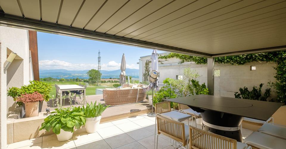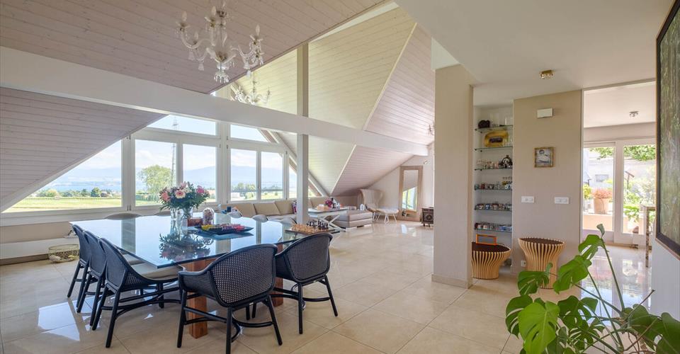 Cette propriété familiale se trouve dans un quartier résidentiel calme de la très prisée commune de Founex au coeur de la Terre Sainte. Elle offre une superbe vue sur le lac et est idéalement située à proximité du campus de la Chataigneraie, des axes autoroutiers et de Genève. Edifiée en 1984 et entièrement rénovée en 2017, cette propriété se caractérise par ses magnifiques vues sur le lac depuis toutes les pièces, lumineuses, et aux volumes généreux. Elle offre une surface utile de 342 m2 organisée sur 3 niveaux et reçoit 4 chambres dont une suite parentale. Toutes les chambres bénéficient d’un accès direct au balcon et jouissent d’une vue imprenable. La parcelle de 1810 m² est idéalement exposée plein sud et bénéficie d’une magnifique vue sur le lac et les vignes environnantes. Les extérieurs se composent d’un spacieux jardin et de deux terrasses dont l’une est agrémentée d’une pergola et d’un brasero. Un garage double et 3 places extérieures complètent ce bel objet. Une propriété parfaitement adaptée à une clientèle à la recherche de calme et de vues panoramiques.