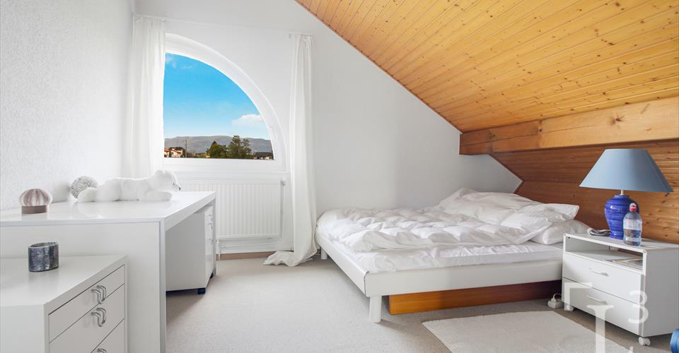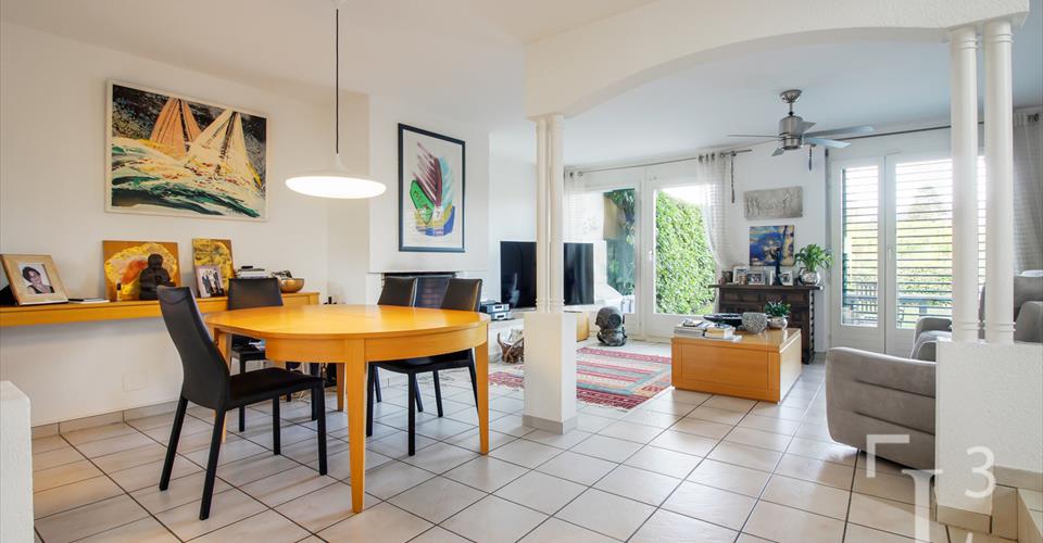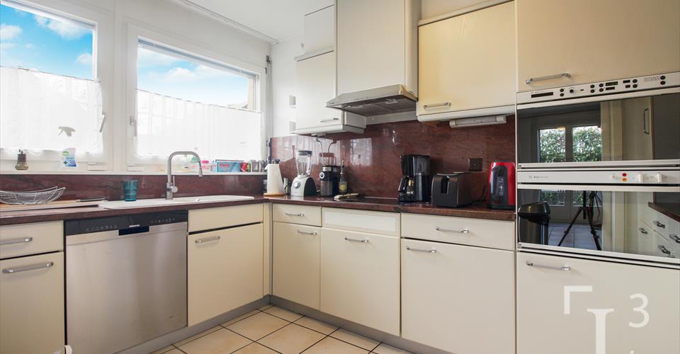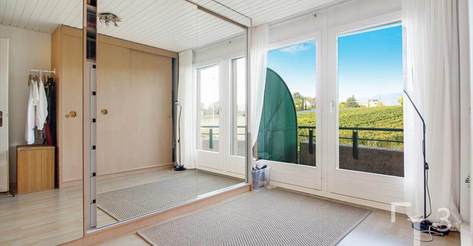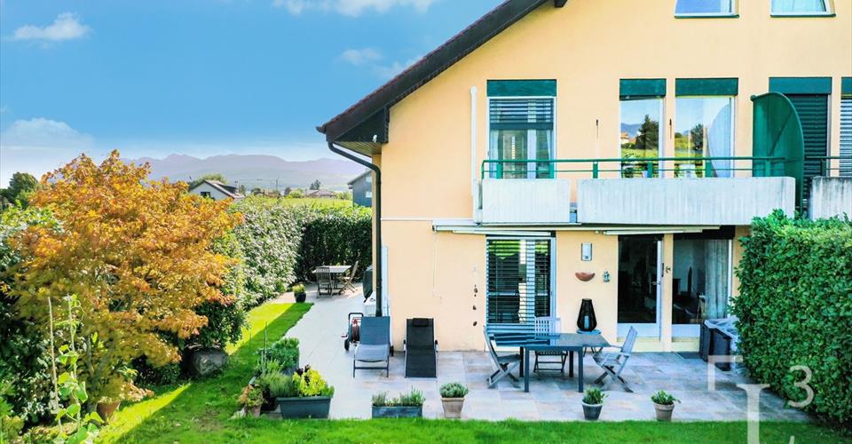 By L3 Properties +++ Extérieurs agréables +++ 5 chambres + un bureau +++ Idéal pour une famille Au calme, en bordure de zone agricole, cette maison jumelle de 7.5 pièces jouit d’une belle situation dans un quartier résidentiel et familial. Les espaces extérieurs offrent une belle vue dégagée sur les vignes et sur le pied du Jura. Depuis les chambres à l’étage et les balcons, de belles échappées s’ouvrent sur le lac et les Alpes. La grande terrasse en L est exposée Ouest. Le jardin est arboré, cloturé et facile d’entretien. La maison est spacieuse. Des travaux de rénovation sont à prévoir. Surface parcelle : env. 377 m2 Surface terrasse en L : env. 40 m2 Surface utile : env. 230 m2 Surface habitable : env. 190 m2 Nbr de chambres : 5 + 1 pièce disponible au rez inférieur Nbr de salles de bain : 2 Avec un accès indépendant, le rez inférieur distribue une buanderie, une cave, le local technique et une grande pièce de 24 m2 selon les besoins (bureau, salle de jeux, fitness etc). Un garage double et 2 places extérieures complètent la maison. Infos & visites : L3 Properties www.L3-properties.ch