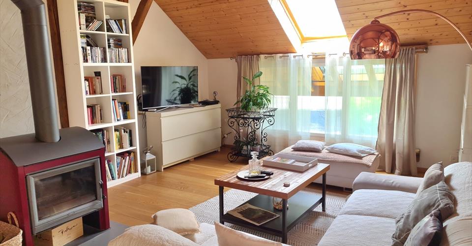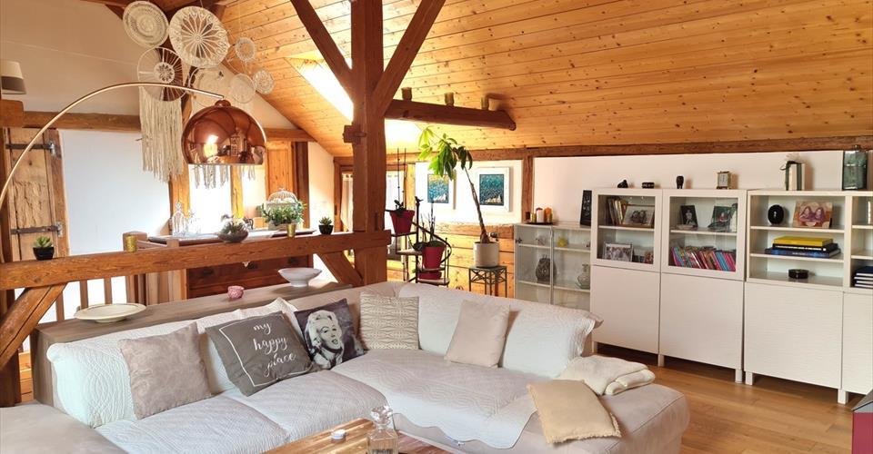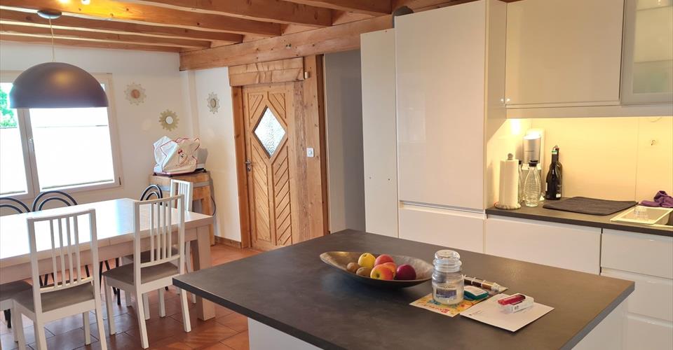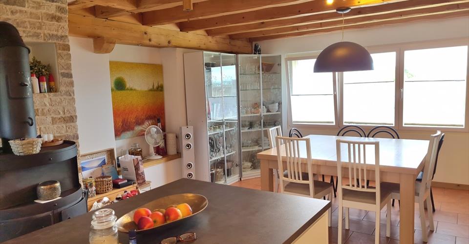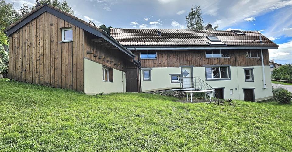 Les volumes généreux de cette magnifique maison rénovée et atypique de 237 m2, avec beaucoup de cachet, vous raviront. Elle est composée d’un spacieux logement 5,5 pièces, d’un vaste atelier, d’une écurie aménageable en chambre indépendante ainsi que d’un carnotzet indépendant sur 2 niveaux à 10 minutes d’Epalinges, à 20 minutes de Lausanne et à 8 minutes d’Echallens. Deux lignes de car postal relient Echallens ou Epalinges-Croisettes (M2). Garderie dans le village. Rez-de-chaussée: hall d’entrée avec vestiaire, vaste cuisine/salle à manger avec poêle et buanderie attenante, séjour, salle de douche. A l’étage: 2 spacieuses chambres dont une avec mezzanine, salle de bains avec baignoire jacuzzi et vaste séjour avec plafond cathédrale et poutres apparentes. Annexes: bureau indépendant, 2 ateliers, WC, écurie (possibilité d’aménager en pièce à vivre supplémentaire), carnotzet indépendant avec cheminée et aménagé sur 2 niveaux, 2 locaux techniques en sous-sol. Cette bâtisse a subi une rénovation lourde au niveau du toit, de la charpente, des fenêtres et vélux, du chauffage et des finitions intérieures. Source captée, isolation double, aspirateur central, dévaloir à linge. Supérette à 5 min. en voiture, Migros et Denner à 10 min. en voiture.