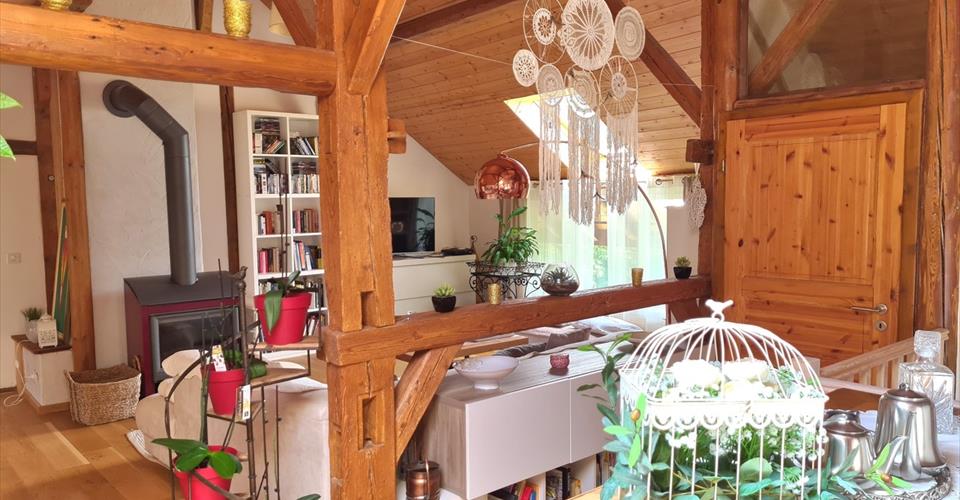Les volumes généreux de cette magnifique maison rénovée et atypique de 237 m2, avec beaucoup de cachet, vous raviront. Elle est composée d’un spacieux logement 5,5 pièces, d’un vaste atelier, d’une écurie aménageable en chambre indépendante ainsi que d’un carnotzet indépendant sur 2 niveaux à 10 minutes d’Epalinges, à 20 minutes de Lausanne et à 8 minutes d’Echallens. Deux lignes de car postal relient Echallens ou Epalinges-Croisettes (M2). Garderie dans le village. Rez-de-chaussée: hall d’entrée avec vestiaire, vaste cuisine/salle à manger avec poêle et buanderie attenante, séjour, salle de douche. A l’étage: 2 spacieuses chambres dont une avec mezzanine, salle de bains avec baignoire jacuzzi et vaste séjour avec plafond cathédrale et poutres apparentes. Annexes: bureau indépendant, 2 ateliers, WC, écurie (possibilité d’aménager en pièce à vivre supplémentaire), carnotzet indépendant avec cheminée et aménagé sur 2 niveaux, 2 locaux techniques en sous-sol. Cette bâtisse a subi une rénovation lourde au niveau du toit, de la charpente, des fenêtres et vélux, du chauffage et des finitions intérieures. Source captée, isolation double, aspirateur central, dévaloir à linge. Supérette à 5 min. en voiture, Migros et Denner à 10 min. en voiture.