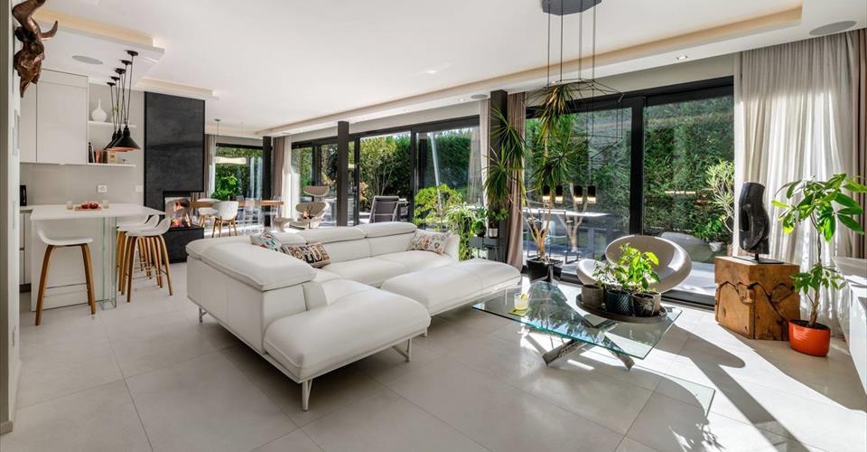 Cette magnifique villa de très haut standing profite d’un environnement très privatif, résidentiel et verdoyant au Grand-Lancy, au calme absolu et à proximité immédiate de toutes les commodités (écoles, transports publiques et commerces). Sise sur une belle parcelle d’environ 460 m², elle profite d’un joli jardin parfaitement paysagé et clôturé, accessible par un portail automatique ainsi que d’une grande terrasse de plus de 100 m². En complément, la villa dispose à l’intérieur de sa propriété et attenant à la propriété voisine, d’un abri de jardin relié au système de domotique de la maison d’environ 10 m². Construite en 2016, cette villa entièrement domotisée, labellisée Minergie, se trouve en parfait état d’entretien et offre des finitions de luxe. Offrant une surface utile de 350 m² répartie sur 3 niveaux, elle se distingue par sa luminosité naturelle, son confort exceptionnel et les finitions raffinées du sous-sol semi-enterré, créant un espace incontournable en parfaite continuité avec les deux autres niveaux. Cette villa, clé en main, peut être achetée avec l’intégralité de son mobilier ainsi que ses luminaires. Elle se distribue comme suit: Rez-de-chaussée : – Hall d’entrée avec penderies sur mesure – WC lavabo pour les invités – Espace salle à manger avec son grand vaisselier sur mesure – Cuisine haut de gamme équipée et agencée, avec îlot central ouvert sur le séjour – Séjour traversant lumineux donnant sur la terrasse avec sa magnifique corniche à éclairage indirect et sa cheminée – Beau bureau suspendu et ses étagères avec éclairage d’ambiance 1er étage : – Grande chambre master avec sa corniche et son éclairage indirect, avec accès sur sa terrasse carrelée – Grand et luxueux dressing sur mesure avec ilot (très facilement convertible en chambre) – Salle de bain avec sa grande baignoire balnéo, ses niches avec éclairage indirect, double vasque en corian – Salle de bain avec douche à l’italienne et plafond effet pluie, grande vasque en corian, WC – Couloir avec enfilade de grands placards sur mesure tout hauteur – Chambre lumineuse avec armoires encastrées – WC lavabo séparé Sous-sol : – Grand bureau/chambre avec jour naturel et salle de bains en suite entièrement carrelée avec douche, WC lavabo – Lumineuse Lingerie/buanderie grâce à son grand saut de loup, offrant de nombreux rangements sur mesure – Abri PC carrelé et peint offrant une pièce de rangements à part entière – Espace chaufferie et local technique – Hall donnant accès au grand garage intérieur carrelé pour 2 voitures, avec porte automatique et bandeau LED Aménagements extérieurs : – Grande terrasse de 100 m² carrelée mimant le carrelage intérieur – Jardin clôturé avec haies et une série de grands bacs roulant fabriqués sur mesure par Image’In – Abri de jardin éclairé – Portails automatiques pour voitures et piétons – 2 places de parc extérieures sécurisées dans l’enceinte – Éclairage extérieur complet avec spots encastrés et appliques (jardin, terrasse, entrée, balcon, escalier, rampe garage) – Arrosage automatique 6 zones avec accès distant – Toiture végétalisée Domotique : – Maison entièrement domotisée (chauffage, éclairage, stores, sono, arrosages, alarme, vidéosurveillance, portail automatique), système KNX, pilotage à distance – Les lumières sont entièrement programmables et dimmables (possibilité de régler l’intensité de la lumière) – Possibilité de piloter l’ensemble de la maison via l’écran Ipad intégré ou via un mobile – Interrupteurs programmables Feller Edizio prestige avec rétro-éclairage rgb et finition en verre, thermostat des pièces et bloc prises assortis – Eclairage LED DALI haut de gamme sur tous les luminaires permettant une haute efficience énergétique (spots encastrés orientables, suspensions, appliques, mirroirs, bandeau led) Finitions et décorations : – Entièrement décoré par une architecte d’intérieure – Finition et matériaux très haut de gamme• Ensemble complet de meubles haut de gamme sur mesures dans toutes les pièces – Œuvre minérale réalisée sur un mur du salon par une artiste à la chaux – Gardes corps intérieurs et extérieurs en verre, saut-de-loup, vitre au sol – Étage en parquet chêne vieilli mains – Rideaux double rails avec voilage en lin et rideaux en laine sur mesure – Robineterie Emporio via Manzoni Gessi / WC & Balnéo Philippe Starck – Vasques en Corian – Corniches avec éclairage indirect LED (double bandeaux lumière naturelle et RGB d’ambiance) – Carrelage haut de gamme (grand format, décors, mosaïques) – Spots encastrés dans les marches d’escalier intérieur et extérieur Confort et technologie – Baies vitrées et fenêtres avec finition alu et triple vitrage, portes intérieures avec isolation phonique renforcée – Cuisine haut de gamme et électroménager de pointe (plan de travail en Dekton, façades en verre, hotte aspirante avec extraction extérieure) – TV Oled “invisible” basculante dans plafond et son home cinema dans la master – Système son intégral avec zones Sonos et enceintes Bose encastrées haut de gamme, 2 home cinéma – Pompe à chaleur et panneaux solaires en toiture – Chauffage par le sol intégral et salle de bains équipée avec sèche serviette et système de soufflerie chauffe pièce – Internet dans toutes les pièces avec câbles ethernet très haut débit cat. 6 ou par wifi – Stores BSO alu orientables et domotisés – Système d’aspiration centralisé Italien Sistem air – Cheminée moderne 3 faces Kalfire Sécurité et intimité – Enceinte villa entièrement clôturée, grande haie, mur de soutainement – Portail automatique et porte piéton avec caméra, accès à distance – Système caméras de pointe ( 8 caméras extérieures et garage, vision nocturn