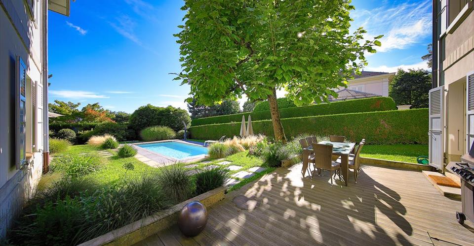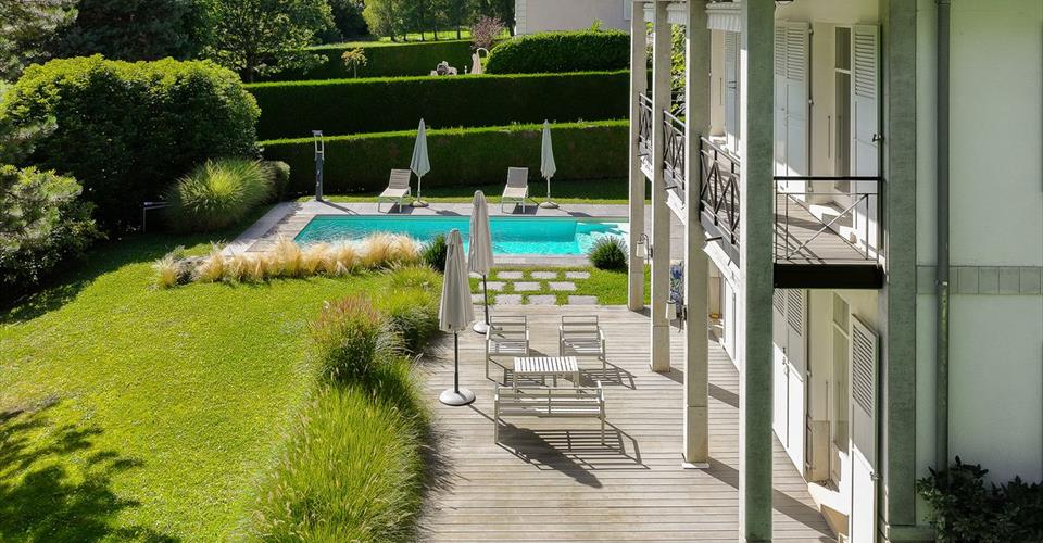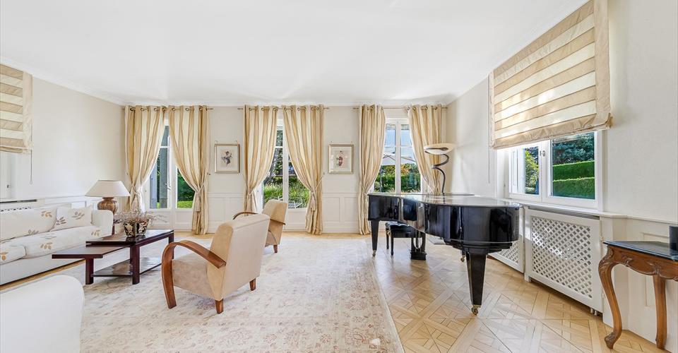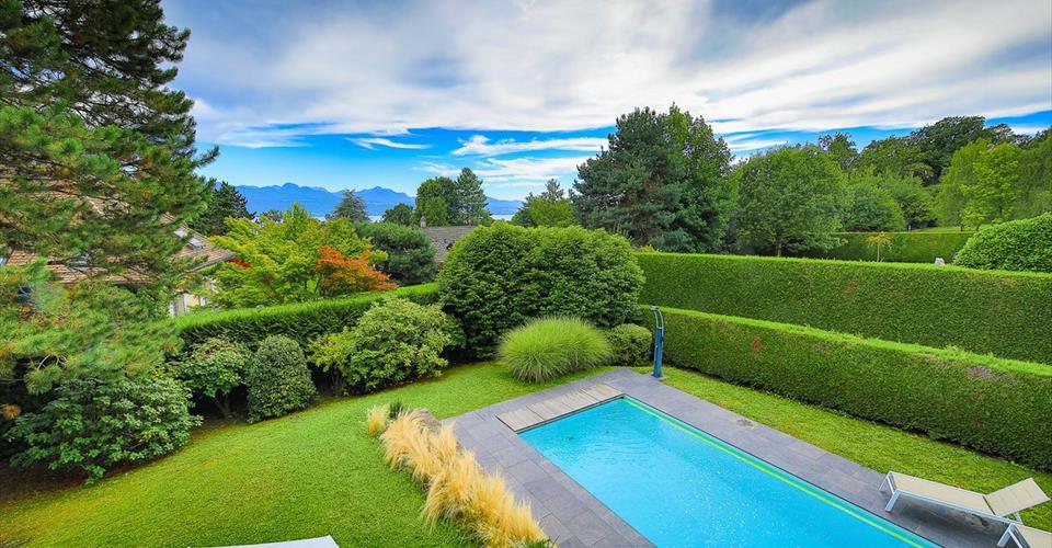 Dominant Lausanne dans un secteur résidentiel très recherché, cette propriété séduit par son calme et son élégance. Érigée en 1993 puis rénovée avec soin en 2007, elle bénéficie d’un emplacement privilégié en lisière de forêt, sur une vaste parcelle close d’environ 3’500 m² qui garantit intimité et tranquillité. Dès l’entrée, l’impression d’espace est immédiate grâce aux volumes généreux et aux hauteurs sous plafond. Les finitions de qualité – sols en bois massif, marbre, cheminée ancienne – apportent une atmosphère à la fois raffinée et chaleureuse. Les pièces de réception, largement ouvertes sur l’extérieur, comprennent un double salon avec bibliothèque, une salle à manger conviviale et une cuisine spacieuse entièrement équipée, toutes prolongées par de belles terrasses et le jardin. Le rez-de-chaussée offre également une chambre indépendante avec salle de bain privative, idéale pour recevoir ou aménager un bureau. À l’étage, la suite parentale profite d’un dressing, d’une salle de bain lumineuse et d’un balcon avec vue sur le parc arboré. Deux autres chambres viennent compléter ce niveau, dont une avec salle d’eau attenante et une autre particulièrement vaste, facilement divisible selon les besoins, ainsi qu’une salle de bain supplémentaire. Le sous-sol aménagé propose plusieurs espaces fonctionnels : une chambre avec salle de bain, une buanderie, un local technique, une cave à vin et une pièce polyvalente de près de 70 m² pouvant accueillir salle de jeux, cinéma privé, espace fitness ou réception. À l’extérieur, une piscine chauffée entourée de terrasses et de verdure offre un cadre de détente privilégié. Plusieurs places de stationnement complètent l’ensemble. À proximité immédiate des écoles internationales, des commerces de Chailly et des transports publics, cette demeure rare conjugue avec harmonie confort moderne, discrétion et nature. Une adresse idéale pour une famille à la recherche d’un cadre de vie exclusif. — Set on the hills above Lausanne, in a highly sought-after residential area, this elegant property combines privacy, comfort and refinement. Built in 1993 and tastefully renovated in 2007, it enjoys a privileged location on the edge of a forest, within a landscaped and fully enclosed plot of about 3,500 m², offering peace and seclusion. From the moment you enter, the sense of space is striking, with generous volumes and high ceilings. Quality finishes – solid wood flooring, marble, and an antique fireplace – create an atmosphere that is both sophisticated and welcoming. The reception areas, bathed in natural light through large bay windows, include a double living room with library, a convivial dining area, and a spacious fully equipped kitchen, all opening onto the terraces and the garden. The ground floor also offers a guest suite with private bathroom and independent access, ideal for visitors or as a home office. Upstairs, the master suite features a dressing room, a bright bathroom, and a balcony overlooking the landscaped park. Two additional bedrooms complete this level, one with an en-suite bathroom and the other particularly spacious, easily divisible if needed, plus an extra family bathroom. The fully fitted lower level provides additional living space: a bedroom with bathroom, laundry, technical room, wine cellar, and a versatile 70 m² room perfect for a playroom, home cinema, fitness area, or reception space. Outdoors, a heated swimming pool surrounded by terraces and greenery invites relaxation in a private and exclusive setting. Several parking spaces complete the property. Close to international schools, Chailly’s shops and public transport, this rare residence harmoniously blends modern comfort, discretion and nature – an ideal family home offering a truly exceptional lifestyle.