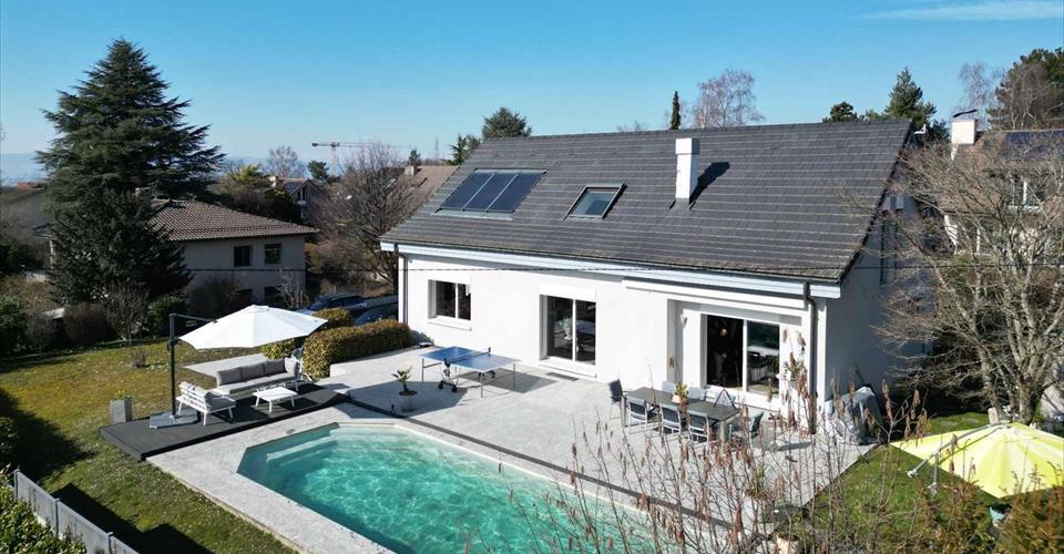 Implanté dans un environnement calme et résidentiel de la commune du Mont-sur-Lausanne, ce bien bénéficie d’une proximité immédiate aux commodités – quartier chic, familial et cosmopolite de la région lausannoise à l’image notamment des différents établissements scolaires réputés. Idéalement desservi par ses transports en commun à seulement 10 minutes du centre-ville de Lausanne et du CHUV. Construite en 1960 et rénovée intégralement par ses actuels propriétaires, la villa séduit par son architecture intemporelle et décloisonnée, offrant une parfaite continuité entre l’intérieur et l’extérieur. Des panneaux solaires et une isolation périphérique complète assurent confort et performance énergétique; aucuns travaux ne sont à prévoir. Son décor repose sur du mobilier et des jeux de couleurs actuels et sobres, créant une atmosphère chaleureuse et aérée tout en mettant en valeur les perspectives environnantes. Réparti sur deux niveaux habitables totalisant environ 220 m² habitables, le logement est complété d’un sous-sol totalement excavé composé notamment d’un fitness/sauna et d’un garage double. Les extérieurs ont su être exploités pour profiter au mieux des journées printanières et estivales. Ses nombreuses terrasses et sa piscine forment un espace idyllique offrant des moments suspendus dans le temps. A noter une grande cour intérieure permettant de garer jusqu’à 7-8 véhicules.
