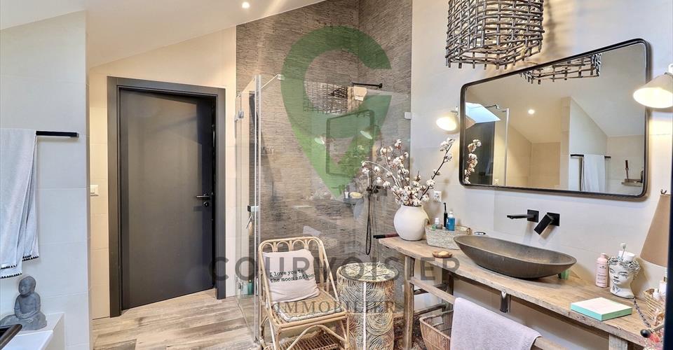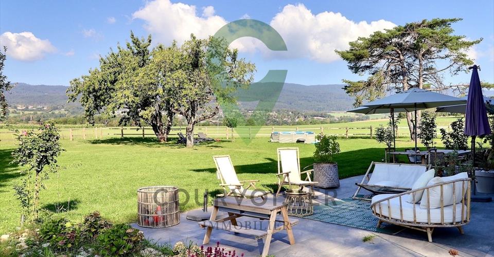 A 10 minutes seulement de l’autoroute et proche de toutes commodités Avec son atmosphère Zen et intime, cette magnifique maison familiale de 7,5 pièces constitue l’endroit parfait pour ceux qui désirent bénéficier d’un environnement serein et sans nuisances, à 10 minutes de l’autoroute et de la ville de Gland et à moins de 20 minutes des dynamiques villes de Nyon et de Rolle. Construite en 2020 avec goût, elle a été conçue avec des matériaux et des finitions de haute qualité, et pensée pour être une résidence durable. Idéalement orientée, ses espaces jouissent d’une luminosité optimale grâce aux nombreuses fenêtres et baies vitrées qui permettent de vivre en communion avec la nature environnante. Sur quatre niveaux et 265m2 habitables, elle se distribue comme suit : Au rez-de-chaussée – l’espace de vie au coeur du foyer Une accueillante entrée Une spacieuse pièce comprenant une cuisine ouverte entièrement équipée avec notamment un bel îlot central/bar, un espace dînatoire et un chaleureux séjour doté d’un poêle suédois Un WC visiteurs Un local technique Les extérieurs et notamment la grande terrasse ouest sont accessibles directement depuis la cuisine ainsi que depuis le séjour. Au premier étage – un couloir de distribution donne accès à Quatre belles chambres Une salle de bains (baignoire, douche, WC, lavabo) et une salle d’eau (douche, WC, lavabo) Dans les combles – l’espace parental idéal Une chambre/bureau Une très grande suite dotée d’un poêle suédois avec sa salle de bains attenante (baignoire, douche, WC, lavabo) et son dressing Le sous-sol Un disponible parfait pour être aménagé en espace de loisir (cinéma/jeux/bricolage/sport) Une cave Sur une parcelle de plus de 3’500m2, les aménagements extérieurs proposent deux terrasses, un jardin clôturé abritant une belle variété d’essences d’arbres et de massifs floraux, un terrain de pétanque, un abri à vélo et deux cabanons. De nombreuses places de parc extérieures et une entrée privée avec portail complètent les prestations que propose ce bien. Cette propriété dégage une atmosphère paisible et chaleureuse, centrée autour du partage et de la convivialité. L’intérieur de la maison comme ses extérieurs offrent de nombreux espaces invitant à la détente alliant intimité, cachet et confort. Ne ratez pas cette opportunité exceptionnelle de vivre en harmonie avec la nature, tout en restant proche des commodités. Pour toutes informations complémentaires ou pour organiser une visite, n’hésitez pas à nous contacter.