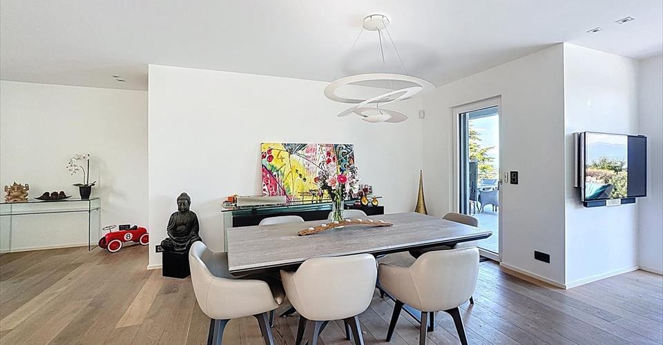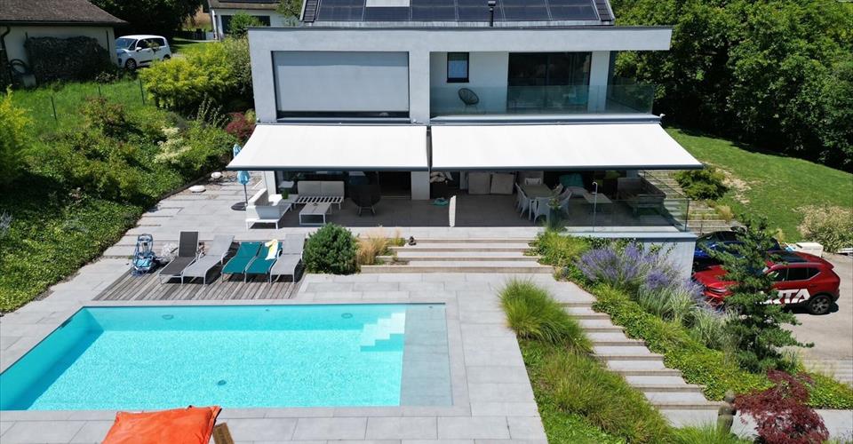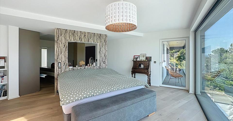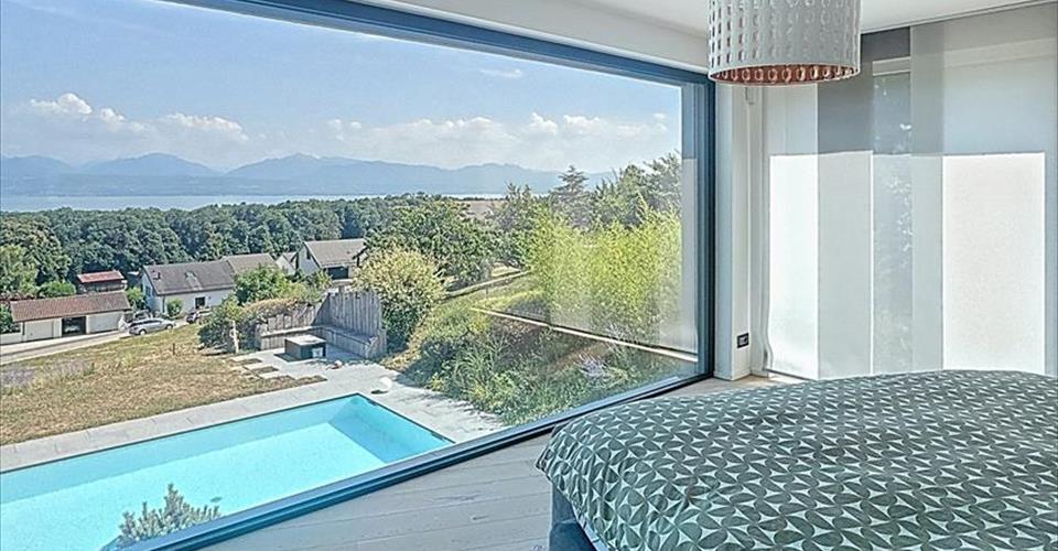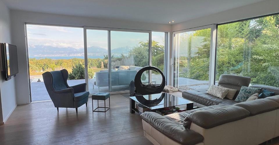 Située au cœur du charmant village de Lully, sur une parcelle de 1485m2, cette maison contemporaine sur quatres niveaux d’environ 345m2, offre un cadre de vie exceptionnel pour une famille en quête de confort, d’espace et de sérénité. Implantée dans un environnement résidentiel privilégié, elle bénéficie d’une vue imprenable sur le Lac Léman et les Alpes, que l’on peut admirer depuis presque chaque pièce de la maison. Dès l’entrée, le ton est donné : volumes généreux, lumière abondante et finitions de qualité. Le séjour de 49m², ouvert sur l’extérieur grâce à de grandes baies vitrées, constitue un espace de vie convivial où famille et amis peuvent se retrouver dans une ambiance chaleureuse autour aussi de la cheminée contemporaine l’hiver. La cuisine ouverte, moderne et entièrement équipée, prolonge cet espace avec élégance et praticité, idéale pour les repas du quotidien. Une suite junior de 28m2 avec salle de bain ouverte et dressing, s’ouvre également sur la terrasse, offrant une vue sur le lac et les alpes dés le réveil. Un vestiaire et un WC visiteurs complètent l’agencement du RDC. Au premier étage, un bureau de 15m2 (facilement aménageable en chambre supplémentaires) et deux suites confortables avec chacune leur salle de bain et leur dressing , dont la magnifique suite parentale de 40m2 et sa vue plongeante sur le lac. Chacune a été pensée pour offrir intimité et bien-être, notamment grâce à des matériaux choisis avec soin et à une atmosphère calme et apaisante, parfaitement adapté à la vie de famille. Le sous-sol entièrement aménagé et chauffé, dispose d’une chambre d’ami et de sa salle de bain, d’une salle de jeu, une pièce dédiée à la musique, une buanderie équipée, une cave, de nombreux espaces de rangements. À l’extérieur, le jardin arboré et la terrasse orientée plein sud invitent à la détente. La piscine chauffée, face au lac, et le coin braséro, deviennent naturellement le cœur des beaux jours, un lieu de partage et de tranquillité pour petits et grands. Le garage double de 33m² et les nombreuses places de stationnement extérieures assurent un confort au quotidien, tout comme les équipements modernes de la maison – chauffage au sol par pompe à chaleur freecooling, triple vitrage, domotique, alarme, isolation performante. Les atouts de cette propriété : • Maison familiale sur 4 niveaux, à l’architecture moderne et soignée • Vue panoramique sur le lac et les montagnes depuis toutes les pièces principales • Vaste séjour lumineux, avec grandes baies vitrées et accès à la terrasse • Cuisine ouverte moderne et entièrement équipée, idéale pour la vie quotidienne et les moments de partage • 4 chambres/suites spacieuses, dont une suite parentale de 40m2 • 4 salles d’eau au design élégant + WC visiteurs • Dressing et salle de bain dans toutes les chambres/suites • Jardin paysagé, coin détente avec braséro et terrasse plein sud, parfaits pour profiter des beaux jours • Piscine chauffée, avec vue sur le Lac Léman • Garage double + plusieurs places de stationnement extérieures • Buanderie, cave, local technique, nombreux rangements • Équipements modernes : chauffage au sol (pompe à chaleur), domotique, alarme, finitions haut de gamme Emplacement À seulement quelques minutes de Morges, proche des écoles, des transports et des axes autoroutiers, cette maison familiale réunit tous les atouts : espace, modernité, sécurité et une vue à couper le souffle. Un bien rare, où l’on se sent chez soi dès les premiers instants. Dossier complet et visites privées sur rendez-vous: Dorothée Lavieville