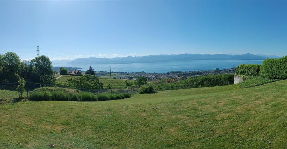 Au cœur de la région de La Côte, dans l’un des quartiers les plus prisés de Mont-sur-Rolle, cette élégante maison jumelle, construite en 2004, offre un cadre de vie exceptionnel avec une vue panoramique à couper le souffle sur le lac Léman et la chaîne du Mont-Blanc. Offrant une surface utile de 290 m² sur trois niveaux, elle allie confort, fonctionnalité et potentiel d’aménagement, le tout dans un environnement paisible et verdoyant. Dès l’entrée, un hall spacieux et baigné de lumière donne le ton et dévoile un panorama saisissant. Le rez-de-chaussée a été conçu pour la convivialité : un vaste séjour lumineux avec accès à la terrasse, une cuisine fermée, une chambre ainsi qu’une salle de bain complètent cet espace. À l’étage, l’espace nuit offre un cadre idéal pour la famille. La suite parentale bénéficie d’une généreuse salle de bain privative. Trois autres grande chambres ainsi qu’une salle de bain. Le sous-sol, propose une grande pièce polyvalente qui pourra être transformée en home cinéma, salle de jeux ou espace bien-être selon vos envies. Deux caves, une buanderie avec chaufferie. À l’extérieur, le jardin de 880 m² invite à la détente pour profiter du panorama depuis la terrasse. Deux garages privatifs offrent un confort supplémentaire au quotidien. Bien que parfaitement habitable, la maison offre un fort potentiel de modernisation. Nos partenaires spécialisés en rénovation peuvent vous accompagner pour valoriser davantage cette propriété et en faire un lieu de vie à votre image.