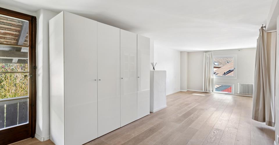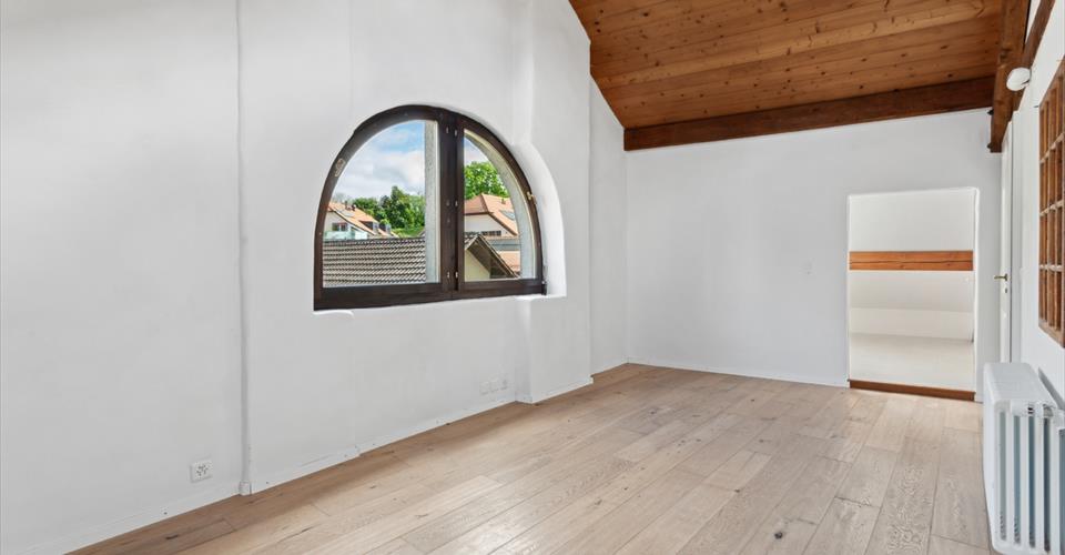 Située en plein cœur de Montagny-près-Yverdon, cette maison de caractère, érigée en 1880 et autrefois galerie d’art, est aujourd’hui une habitation pleine de charme ayant su conserver son authenticité. Depuis plus de 30 ans, elle offre un cadre de vie chaleureux, paisible et central, à proximité du centre commercial Chamard, des écoles, des transports publics et des accès autoroutiers, tout en étant à quelques minutes d’Yverdon-les-Bains. Rénovée en 2008, cette bâtisse d’environ 285 m² nettes habitables répartis sur trois niveaux séduit par ses volumes majestueux, son plafond cathédrale et ses éléments d’époque. Dès l’entrée, l’atmosphère chaleureuse du lieu vous enveloppe. Le rez-de-chaussée comprend une spacieuse pièce à vivre lumineuse, avec salon, salle à manger et cuisine ouverte entièrement équipée, ainsi qu’un bureau, un hall et un WC visiteurs. L’étage supérieur présente un magnifique hall central avec vue sur la pièce de vie et trois grandes chambres, dont une avec balcon de 10 m². Ce niveau comprend également une salle de bains, un dressing et une buanderie. Le dernier étage abrite une suite parentale avec dressing et salle de douche, ainsi qu’une chambre supplémentaire. Un grand volume indépendant de 110 m² au rez inférieur, avec accès privé, offre un potentiel de réaménagement : il peut être transformé en appartement, garage, atelier ou espace de stockage. Actuellement utilisé comme sous-sol, il comprend également une cave de 30 m², un autre espace indépendant et les locaux techniques. Chauffée au gaz, avec fenêtres en double vitrage, toiture isolée et un boiler remplacé en 2021, cette maison allie charme d’antan et confort moderne. Avec son fort potentiel d’aménagement, elle séduira familles et amateurs de lieux atypiques. Contactez-nous directement pour plus d’informations ou pour une visite ! Léon Tharin.