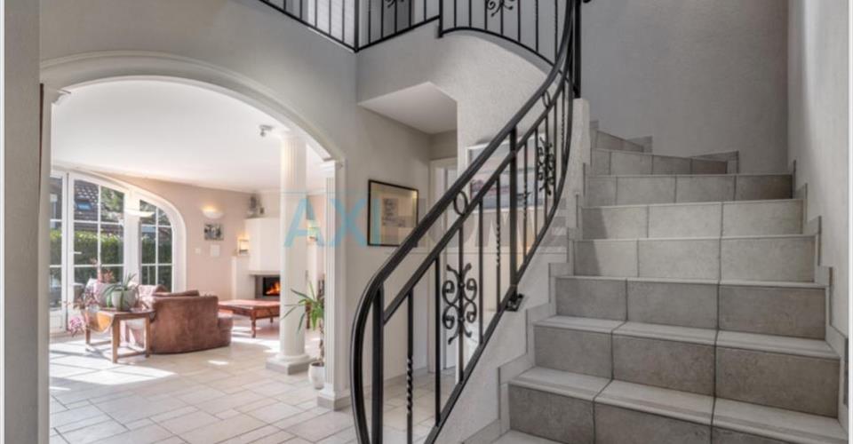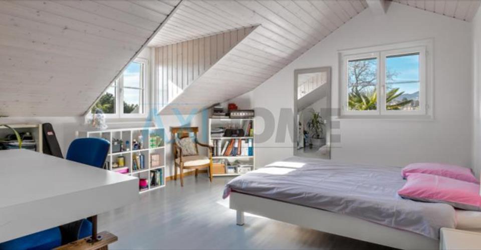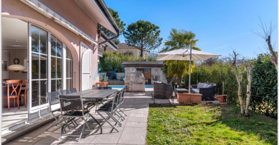 Nichée dans le charmant village de Brent, sur la commune de Montreux, cette magnifique propriété individuelle de type vaudoise, construite en 2000 et très bien entretenue, offre un cadre de vie alliant confort et efficacité énergétique. Avec une surface habitable d’environ 230 m² et une surface utile d’environ 300 m², cette demeure se distingue par ses volumes généreux et sa luminosité exceptionnelle. Le rez-de-chaussée propose un vaste séjour agrémenté de colonnades et d’une cheminée, ouvert sur une grande terrasse plein sud offrant une belle vue sur les montagnes avec une échappée sur le lac. Côté équipements, cette maison bénéficie d’installations modernes et performantes. En 2023, un système de chauffage par pompe à chaleur air/air a été installé, garantissant une efficacité énergétique optimale. De plus, des panneaux photovoltaïques ont été ajoutés pour assurer une production d’énergie durable et économique. À l’extérieur, une piscine couverte, un pool house, un espace barbecue et un four à pizza extérieur permettent de profiter pleinement des beaux jours. Deux cabanons de jardin offrent un espace de rangement supplémentaire. La propriété dispose également de quatre places de parc extérieures sécurisées par un portail d’entrée électrique. N’hésitez pas à nous contacter pour recevoir le dossier, ou planifier une visite.