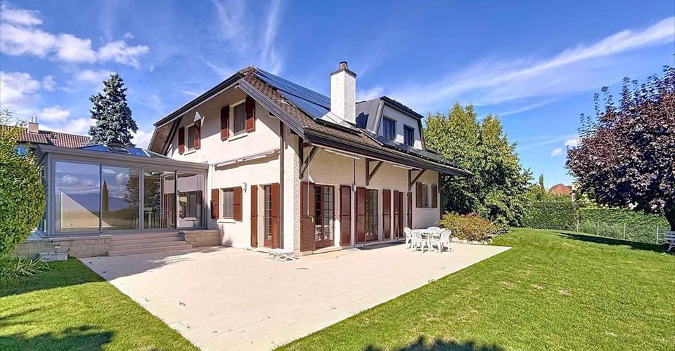 Barnes | La Côte a le plaisir de vous présenter cette charmante villa vaudoise offrant une vue dégagée sur la campagne nyonnaise et le Mont-Blanc. Édifiée sur une parcelle d’environ 1’900 m2 de la commune de Chéserex et située en limite de zone agricole, cette propriété bénéficie d’une surface habitable d’environ 230 m2 répartie sur trois niveaux. Au rez-de-chaussée, vous découvrirez un espace de vie lumineux composé d’un salon avec cheminée, d’une salle à manger conviviale, d’une cuisine entièrement équipée, d’un bureau, ainsi que d’une salle d’eau. La véranda, baignée de lumière, s’ouvre sur une agréable terrasse extérieure, parfaite pour profiter des beaux jours. L’espace nuit, situé à l’étage, se compose d’une suite parentale avec salle de bains privative, de trois chambres à coucher supplémentaires et d’une salle d’eau. Au sous-sol se trouvent un espace polyvalent idéal pour aménager une salle de jeux, ainsi qu’une grande cave, une cave à vin, une buanderie et un local technique. L’extérieur bénéficie d’un magnifique jardin parfaitement entretenu ainsi que d’une spacieuse terrasse, offrant un cadre paisible et verdoyant. Un garage double et plusieurs places de parc extérieures complètent ce bien.