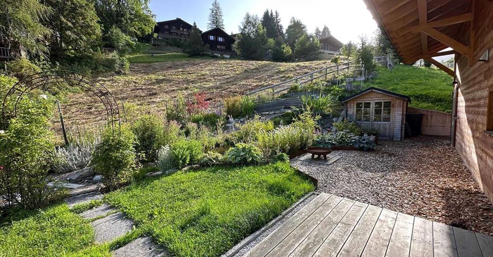 Situation dominante, pour ce chalet qui est bâti sur une parcelle de 1668 m² dans un cadre idyllique entouré de verdure, à seulement 10 minutes à pied du centre du village et de toutes ses commodités. Ce chalet offre une surface habitable d’environ 178 m² répartie sur 2 niveaux. Entièrement rénové en 2015, il présente une conception contemporaine, des lignes architecturales modernes et des finitions d’excellente qualité. À l’extérieur, vous pourrez vous prélasser sur une grande terrasse offrant un panorama extraordinaire, parfaite pour des barbecues en famille ou entre amis et des moments de détente inoubliables. Un garage et plusieurs places de parc extérieures viennent compléter ce bien. Il est important de noter que ce chalet peut être acquis uniquement comme résidence principale. Rez-de-chaussée : Un hall d’entrée Un grand séjour avec poêle à pellet et accès à la grande terrasse offrant une vue panoramique Une cuisine ouverte entièrement équipée Un garde-manger Une salle de bains avec douche, WC et coin buanderie Un espace de détente/séjour avec cheminée 1er étage : Une mezzanine surplombant le séjour Trois chambres à coucher Un coin bureau Une salle de bains avec baignoire et WC Un grand dressing Ne manquez pas cette occasion unique d’acquérir un bijou immobilier aux Diablerets. Contactez-nous pour une visite et vivez des moments inoubliables dans ce lieu d’exception.