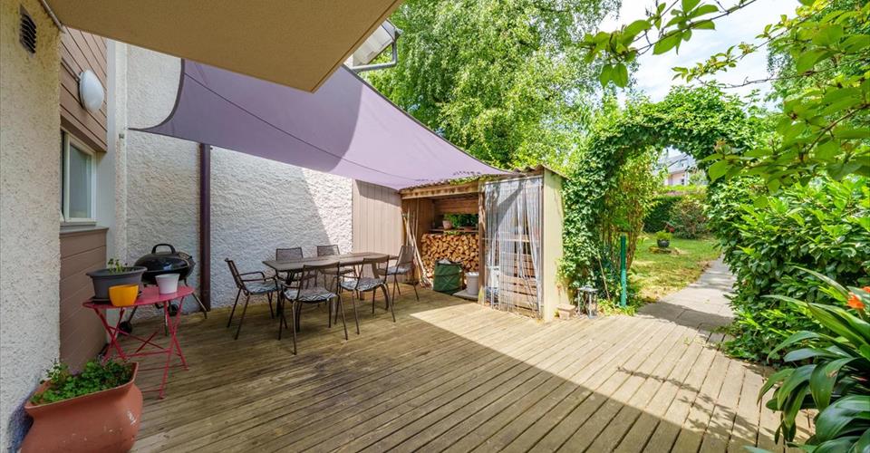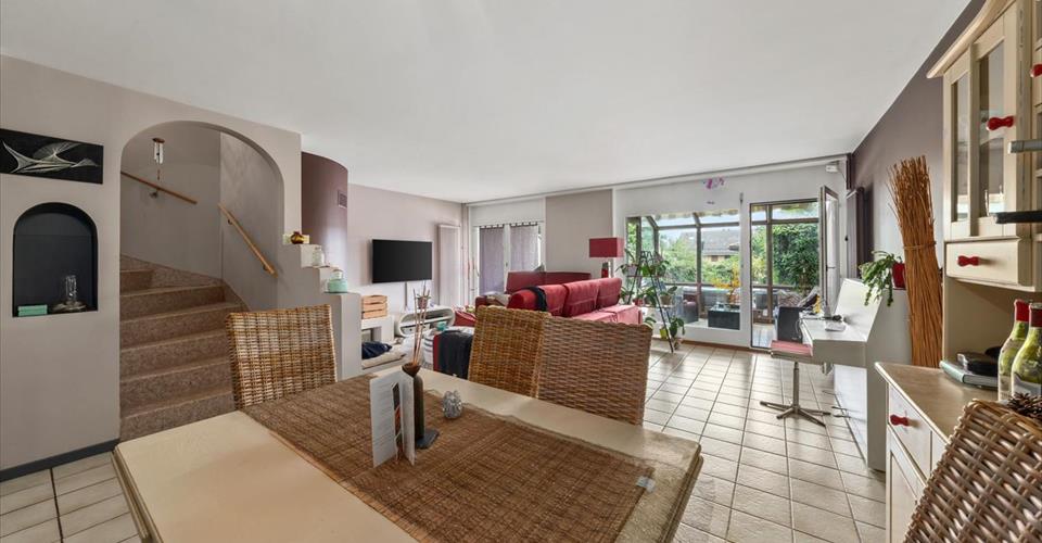 A Renens, dans un quartier calme, cette jolie maison mitoyenne de 7,5 pièces est située sur une parcelle de 350 m². Vous découvrirez une entrée accueillante avec une belle terrasse en bois de 30m² et un bûcher. Au rez-de-chaussée cette maison dispose d’un hall d’entrée, d’un w.c. visiteurs, d’une cuisine avec coin repas, d’un grand séjour/salle à manger avec cheminée fermée qui donnent accès à la terrasse boisée et au jardin avec une piscine. Une belle véranda chauffée de 7,5 m² donne également accès à la terrasse. A l’étage, il y a quatre chambres, dont deux qui donnent accès à un balcon d’environ 10m² avec vue sur le lac, une salle de bains avec un w.c. Dans les combles vous trouverez deux chambres avec vélux et une salle de douche avec w.c. A tous les étages, un dévaloir à linge qui donne accès direct à la buanderie. Au sous-sol, vous arrivez directement sur la place de parc intérieure munie d’une prise pour un véhicule électrique. Deux places extérieures sont également disponibles. Un sous-sol bien aménagé avec une cave à vins, un sauna avec une douche et w.c. ainsi qu’un local technique, une buanderie et une zone de rangement sont à disposition. Une jolie terrasse bien orientée côté sud, un jardin verdoyant avec piscine complètent idéalement ce bien. Cette maison est parfaite pour une famille. Renens est une commune Vaudoise de 21’408 habitants en 2023 et se situe dans le district de l’Ouest Lausannois. Elle dispose de toutes les commodités usuelles. La maison est proche des arrêts de bus et à 2km de la gare de Renens. Dans un rayon de 3 km se trouvent les jardins d’enfants et les établissements scolaires. La propriété se situe, en voiture, à environ 15 minutes du centre de Lausanne.