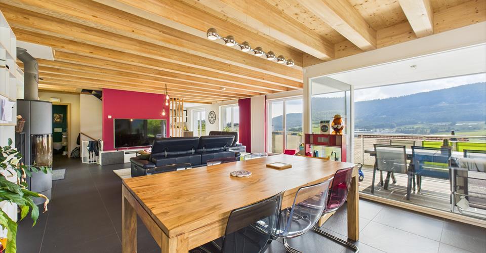 Construite en 2011, cette villa moderne et lumineuse offre un cadre de vie idéal pour une famille à la recherche d’espace, de confort et de polyvalence. Implantée sur une parcelle de 1’482 m², elle bénéficie d’une belle vue dégagée et d’un environnement calme. Le logement principal, d’une surface habitable d’environ 165 m², séduit par ses volumes et ses aménagements : Un séjour avec cuisine ouverte de 67,9 m², baigné de lumière grâce à de larges baies vitrées. Un grand garde-manger attenant à la cuisine, idéal pour le rangement. Deux grandes chambres enfants de 16 m² chacune. Une suite parentale avec dressing et salle de bains privative (douche à l’italienne). Accès à un balcon de 30 m², une terrasse de 60 m² et un vaste jardin soigneusement entretenu. En complément, un appartement 2.5 pièces de 67 m², créé en 2025, constitue un atout majeur. Idéal pour accueillir un parent, un jeune adulte souhaitant plus d’indépendance, ou encore pour générer un revenu locatif. Un garage double construit en 2025 ainsi que 4 places de parc extérieures complètent agréablement le bien. La distribution intérieure offre également la possibilité de remoduler l’étage afin de créer une 4ème chambre selon les besoins. Cette maison familiale allie parfaitement confort moderne, grands espaces et flexibilité d’aménagement. PRIX DE VENTE TOTAL : CHF 1’490’000.- Renseignements et visite auprès de Monsieur Junod au 079 938 45 79