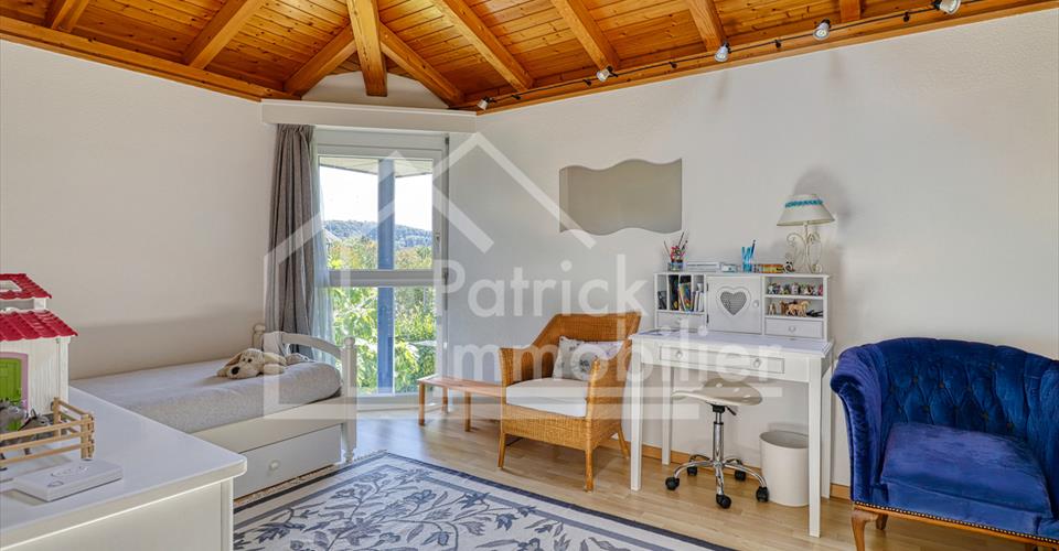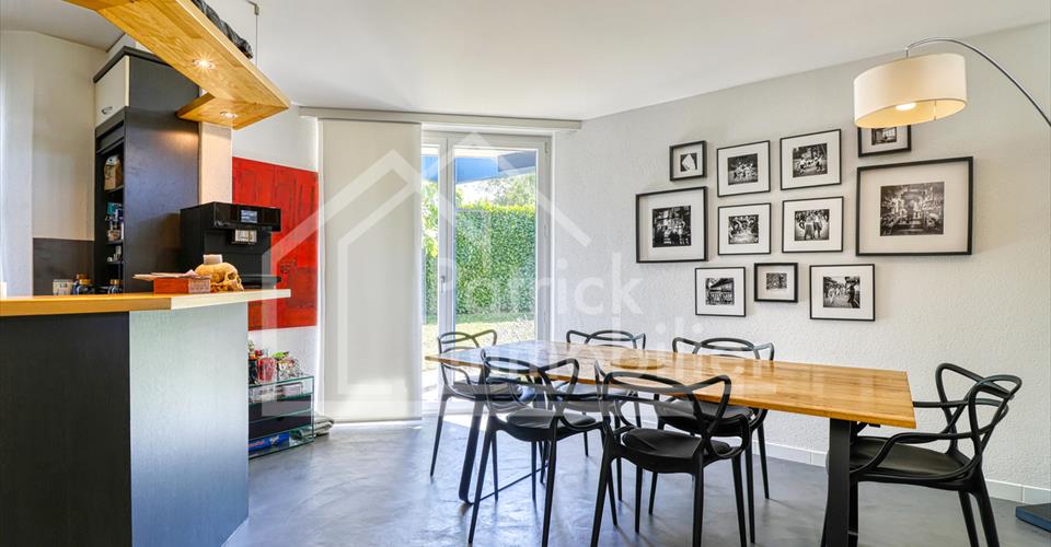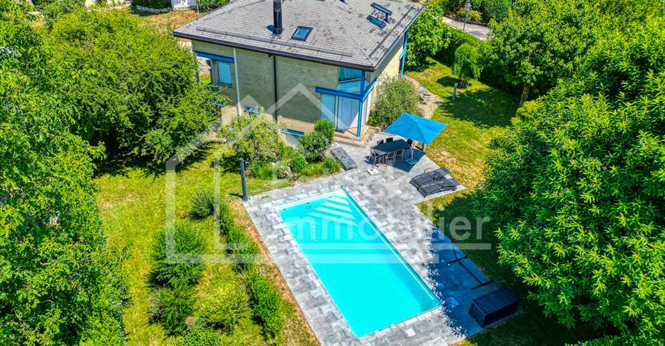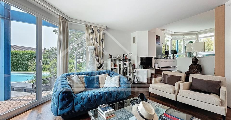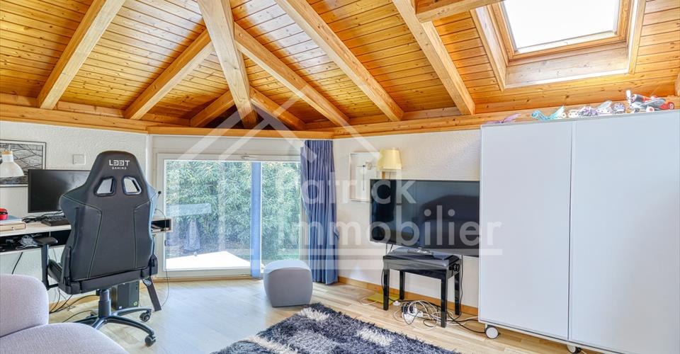 Patrick Immobilier présente en exclusivité cette villa familiale pleine de charme Un cadre de vie privilégié à seulement 18 minute de la gare de Lausanne. Située dans la charmante commune de Vufflens-la-Ville, cette propriété exceptionnelle bénéficie d’un emplacement idéal : à proximité immédiate de l’école, de la garderie et des transports, elle allie parfaitement la tranquillité d’un cadre villageois à la praticité du quotidien. Implantée sur une généreuse parcelle, la villa dispose également d’une dépendance aménageable, parfaite pour accueillir un studio indépendant, un espace pour des invités ou le développement d’une activité professionnelle à domicile. Nichée entre Lausanne et la nature environnante, elle séduit par son ambiance préservée, ses sentiers verdoyants, et sa connexion rapide aux axes principaux. Grâce à la gare, Lausanne est accessible en quelques minutes, et le centre-ville se trouve à seulement 18 minutes en voiture. Le lieu parfait pour concilier calme, accessibilité et qualité de vie. Une villa pensée pour le confort, la lumière et l’harmonie Érigée en 1992 sur une parcelle d’environ 1’204 m², cette villa individuelle a bénéficié de rénovations soignées pour répondre aux standards actuels de confort et de fonctionnalité. D’une surface habitable d’environ 180 m² pour une surface utile de 215 m², elle se distingue par ses volumes bien répartis, sa lumière naturelle omniprésente, et son architecture en quart de niveaux, qui crée des ambiances distinctes et chaleureuses. Dès l’entrée, un puits de lumière inonde la cage d’escalier, renforçant la clarté naturelle même par temps couvert. L’escalier principal a également été repensé pour améliorer la fluidité de circulation. Le système de ventilation réversible, couplé à une climatisation installée en 2021, garantit une température agréable en toute saison. La chaudière à gaz, remplacée en 2019, assure le chauffage de l’habitation via un système performant et maîtrisé. La piscine au sel, quant à elle, est chauffée par une pompe à chaleur indépendante de dernière génération. Une répartition intelligente sur plusieurs niveaux Rez-de-chaussée : Hall d’entrée avec rangements intégrés Grand salon en quart de niveaux, offrant deux espaces : l’un intimiste, l’autre ouvert et lumineux Cuisine moderne entièrement équipée, avec accès direct à la terrasse Salle à manger spacieuse Accès direct à un jardin paysager de 1’062 m² Étage : Suite parentale avec salle de bain privative et vue dégagée Deux chambres lumineuses avec rangements Salle de bain entièrement rénovée, avec matériaux de qualité Rez-inférieur : Mini-studio indépendant, idéal pour un bureau, un espace invités ou adolescent Local technique et buanderie Cave à vin avec isolation renforcée Escalier équipé d’un éclairage LED automatique et accès sécurisé aux différentes zones Un extérieur idyllique pour profiter pleinement des beaux jours Le jardin a été aménagé avec soin, intégrant différentes zones de détente et de verdure. La piscine enterrée (8m x 3.80), chauffée par pompe à chaleur, constitue un véritable atout pour des moments de bien-être en famille ou entre amis. Un garage double avec porte motorisée et système de sécurité complète l’ensemble. Pourquoi choisir cette villa ? studio indépendant Architecture en demi-niveaux et atmosphères distinctes Piscine au sel chauffée par PAC Exposition optimale et lumière naturelle abondante Chauffage au gaz avec chaudière récente Climatisation réversible + ventilation Jardin paysager de plus de 1’000 m² À 18 minutes de Lausanne, proche de Crissier Garage double + sécurité Aucun vis-à-vis direct et environnement calme Rénovations & aménagements récents Climatisation…