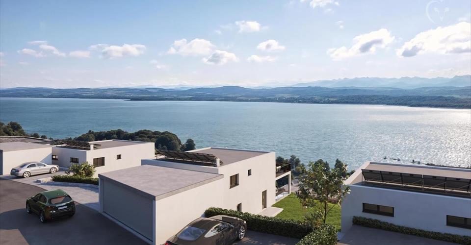 Le projet Villa Panoramica est un projet exclusif de trois villas individuelles au design moderne, idéalement orientées plein sud pour offrir une vue panoramique imprenable sur le lac de Morat et un ensoleillement optimal. Spacieuses et baignées de lumière grâce à de larges baies vitrées, elles proposent un confort haut de gamme avec des finitions personnalisables et des équipements de prestige. La villa B est située sur une parcelle de 617m2 et se compose comme suit: Au rez-de-chaussée: 1 entrée avec vestiaire, un économat et un WC visiteurs 1 grande pièce à vivre lumineuse de 58 m2, comprenant une cuisine, une salle à manger et un séjour avec accès à une pergola de 25m2 ainsi qu’à une terrasse de 29m2 et la possibilité d’intégrer une piscine sur la parcelle. Le tout, avec vue panoramique sur le lac de Morat et les Alpes Bernoises A l’étage: 2 chambres à coucher de 14m2 1 chambre à coucher de 16m2 1 suite parentale de 26m2 avec dressing, salle de bain et terrasse privative de 27m2 1 deuxième salle de bain de 8m2 Au sous-sol: 1 salle de loisirs de 20m2 aménageable selon les envies : salle de jeux, home cinéma ou espace bien-être, 1 buanderie 1 local technique 3 places de parc dont 2 couvertes complètent ce bien. Conçue dans une démarche écoresponsable, la villa bénéficie de panneaux photovoltaïques, d’un système de chauffage pompe à chaleur géothermique et de la possibilité d’être équipée de bornes de recharge pour voitures électriques. Cette villa conjugue donc confort et durabilité pour un mode de vie unique et privilégié dans un cadre exceptionnel et une vue à couper le souffle ! Pour plus d’informations: Amélie Berger