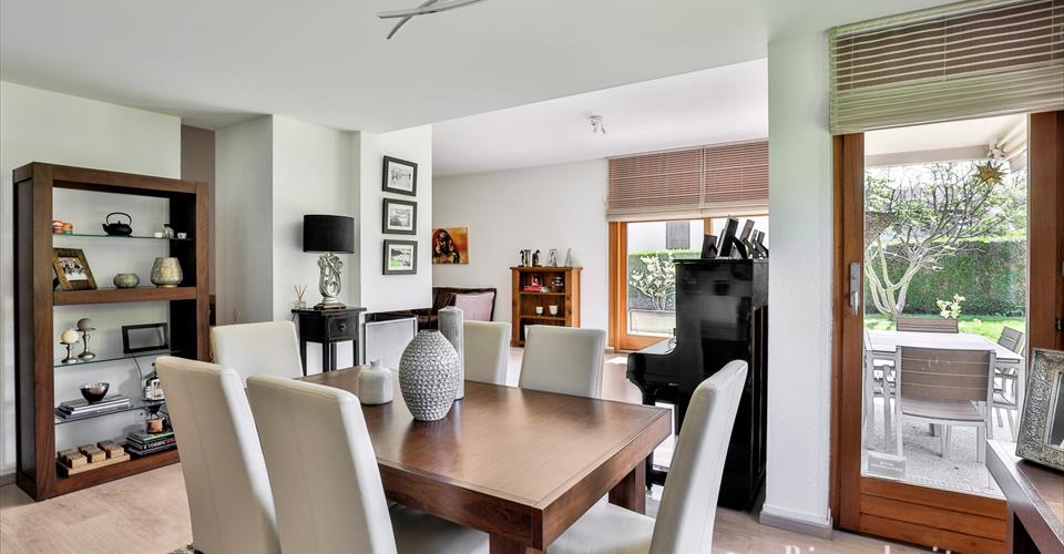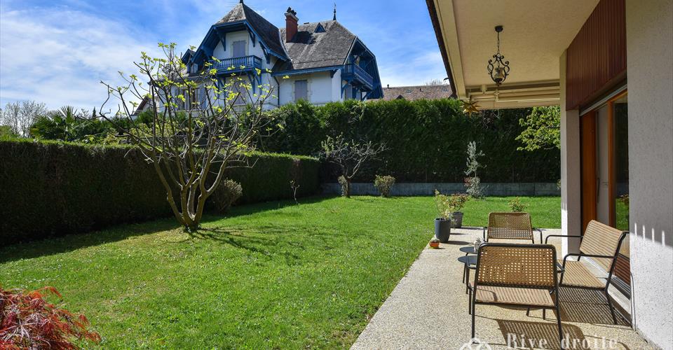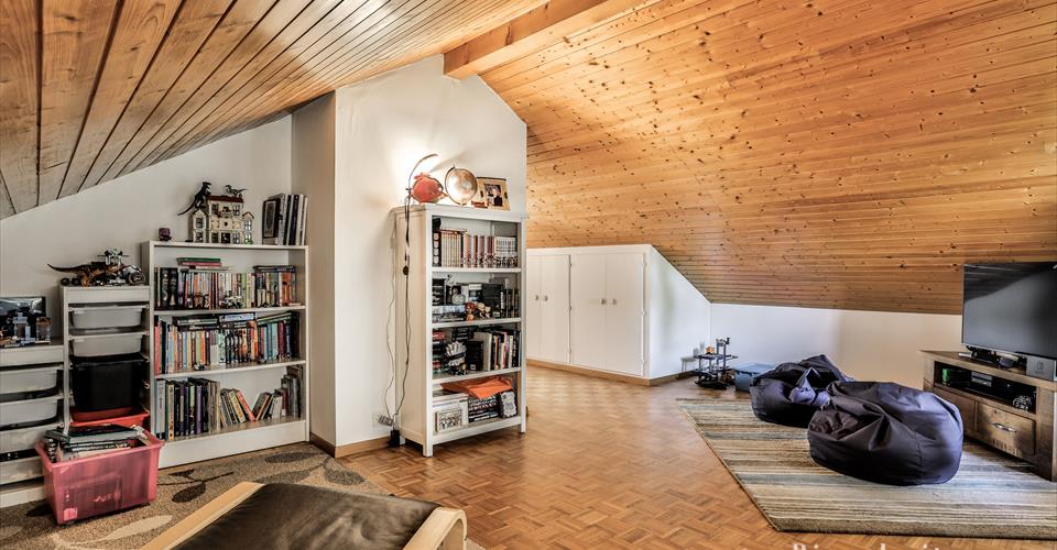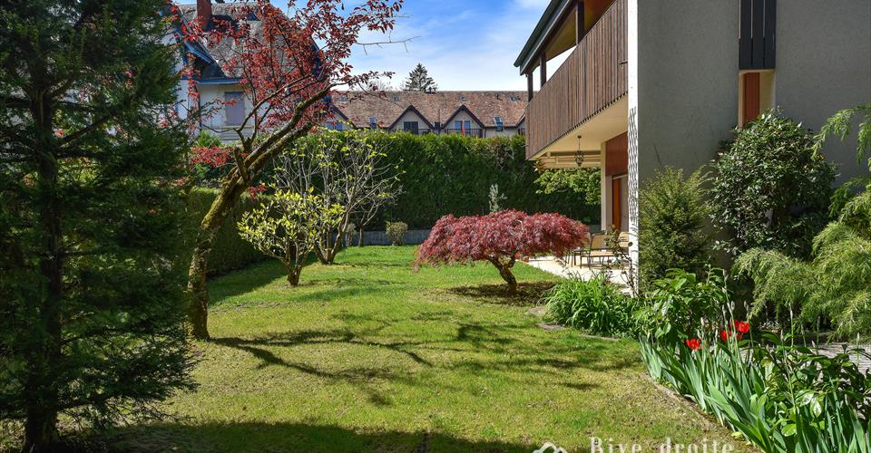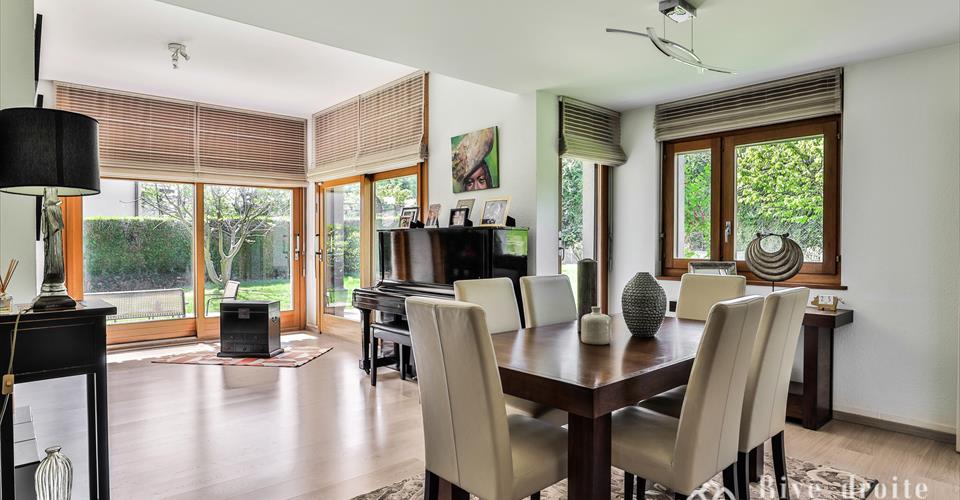 Située dans une ruelle calme et charmante de la commune de Chambésy, cette villa est bâtie sur une parcelle joliment arborée et aménagée. Elle offre une surface habitable de 280 m2 env. Elle est composée au rez d’un hall d’entrée, d’un vaste séjour en L agrémenté d’une cheminée, d’une cuisine fermée entièrement équipée. Au demi-niveau supérieur, 2 chambres-à-coucher une salle-de-bain, une master suite avec sa salle-de-bain et son dressing attenant, Grande pièce dans les combles avec salle-de-bain. Au rez inférieur, 1 appartement indépendant composé d’une grande pièce à vivre, d’une cuisine équipée, salle-de-bain, une cave, chaufferie, wc et douche. Garage + grand couvert à voitures Loyer mensuel: Frs 8’500.-