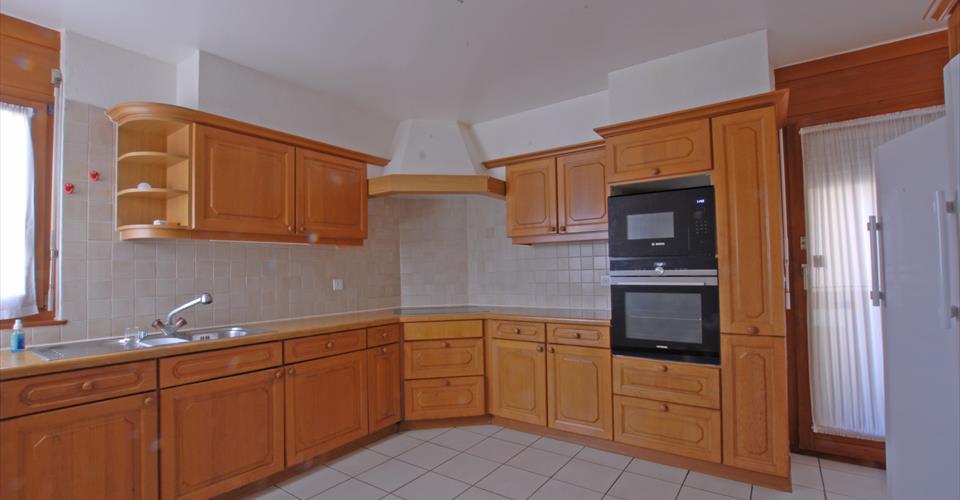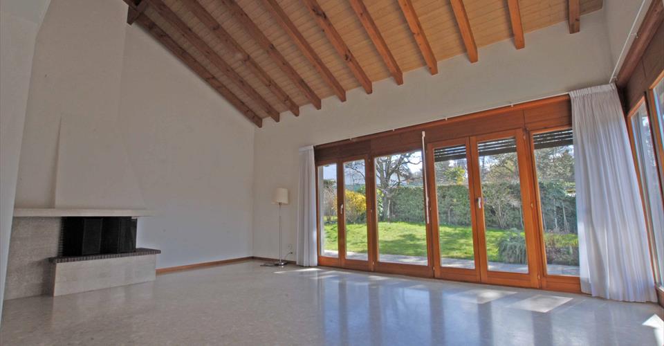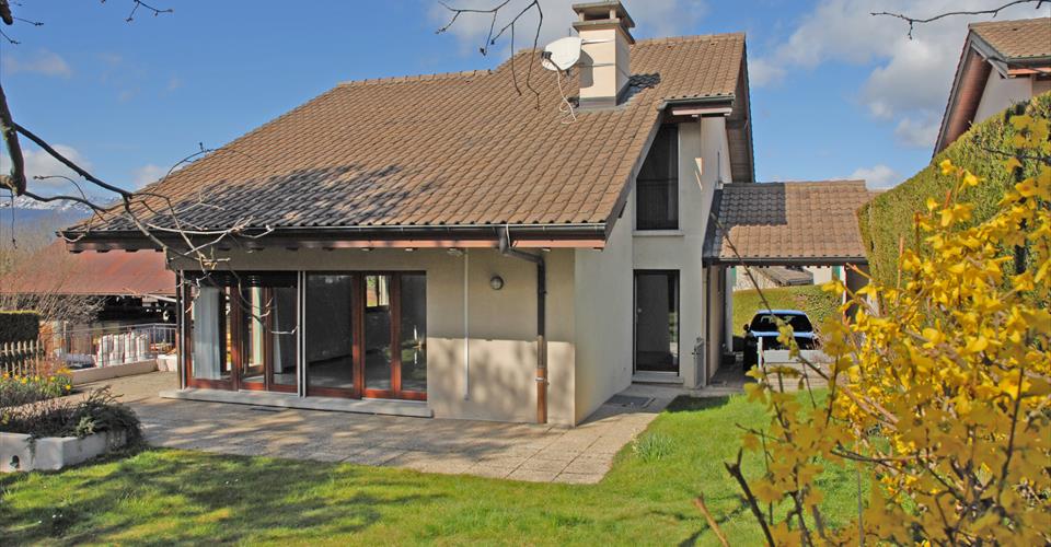 Située dans un environnement calme, cette belle villa offre une surface habitable de 170 m2 env. + un sous-sol complet. Elle comprend un hall d’entrée, un grand living agrémenté d’une cheminée avec accès à la terrasse et au jardin, une cuisine fermée entièrement équipée, une chambre-à-coucher, une salle-de-bain-wc. A l’étage, 3 belles chambres, salle-de-bain. Sous-sol complet comprenant une salle-de-jeux avec accès au jardin, une chambre, 1 salle-de-douche, une buanderie équipée, une cave-abri. Parking couvert et place de parc extérieure. Disponible au 1er janvier 2026 Loyer mensuel : Frs 5’700.-