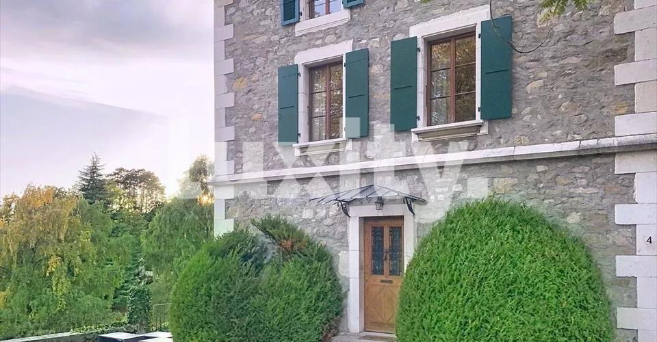 Située dans un environnement privilégié et confidentiel, à seulement 300 m de la plage de Prangins et 100 m des commerces, cette demeure d’exception classée séduit par son élégance, sa luminosité et son charme intemporel. Le rez-de-chaussée offre une entrée spacieuse menant à une cuisine entièrement équipée, prolongée par une salle à manger avec cheminée et vue sur le lac. Un double séjour lumineux avec deux cheminées s’ouvre sur un balcon dominant un vaste jardin sans vis-à-vis, offrant calme et intimité absolue. Au sous-sol, une grande salle de réception et une cave à vin complètent les espaces de convivialité. Le premier étage comprend une suite parentale avec cheminée, dressing et salle de bain, ainsi que deux chambres, une salle de bain et une buanderie. Au dernier étage, deux chambres, deux salles de douche et un bureau offrent un espace idéal pour accueillir famille et invités. La propriété s’étend sur un immense jardin arboré, agrémenté de dépendances, d’une cave et d’un garage. Un bien rare, lumineux et plein de caractère, disponible immédiatement, meublé ou non. Photos sur demande. A Visiter avec L. Florentin