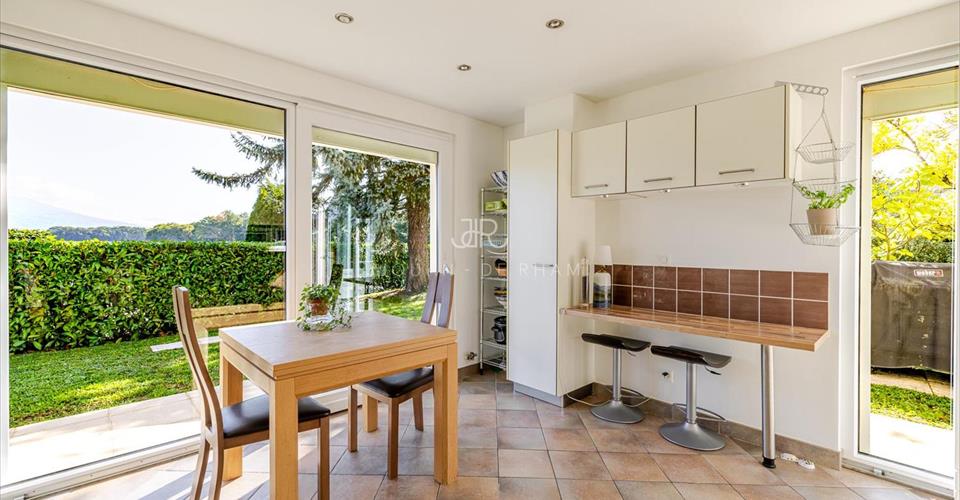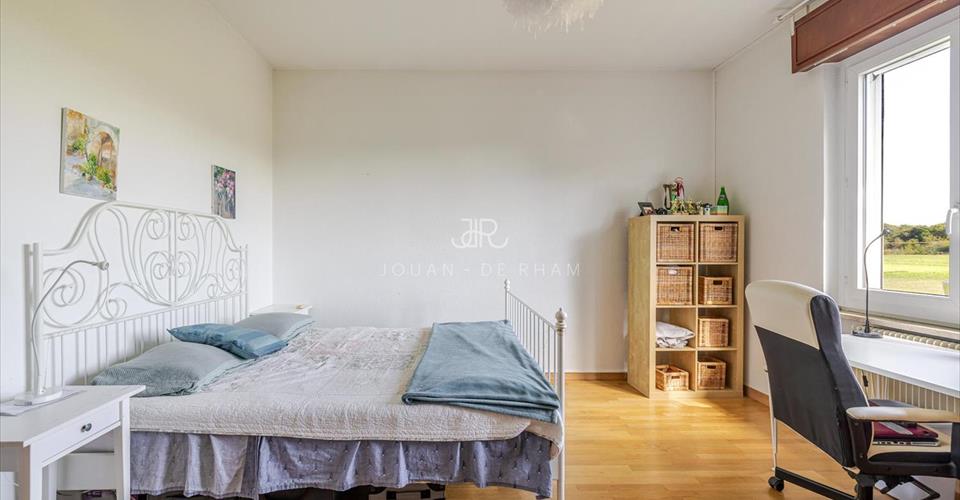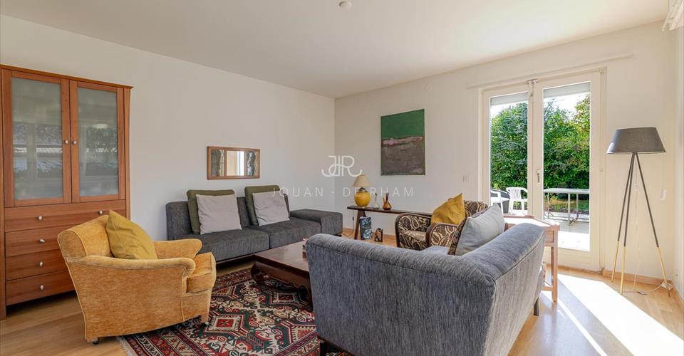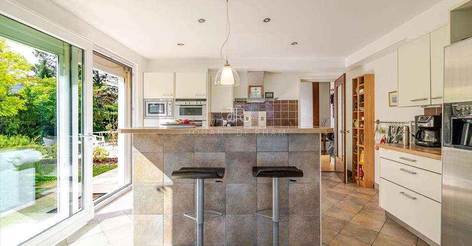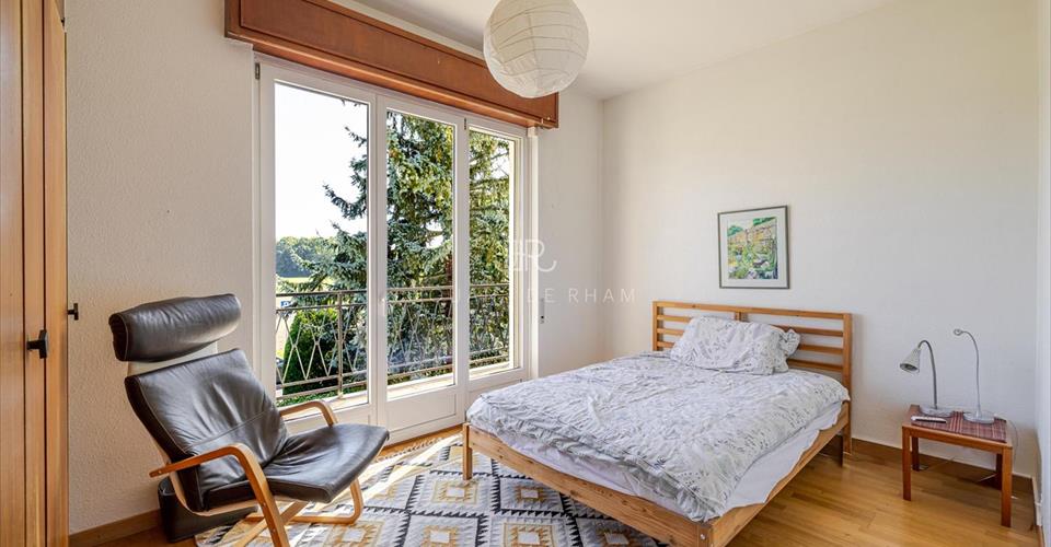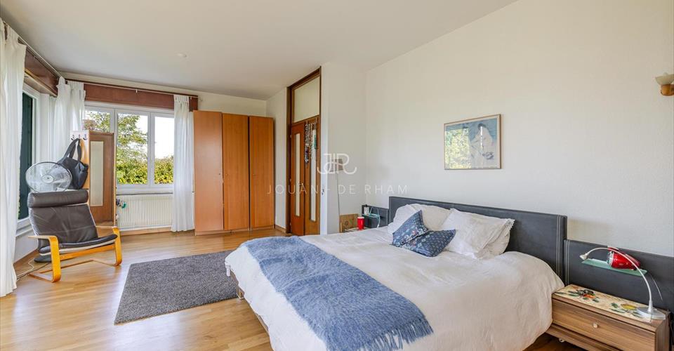 Jouan – de Rham a le plaisir de vous présenter en exclusivité cette belle maison individuelle située dans un quartier résidentiel et verdoyant de la commune d’Anières. C’est dans ce cadre recherché que cette villa lumineuse et volumineuse des années 60 développe env. 230 m² habitables sur une parcelle de 1’200 m². Le rez-de-chaussée accueille un hall d’entrée, un vaste séjour baigné de lumière donnant accès à la terrasse et au jardin, une cuisine conviviale, une chambre/bureau ainsi qu’un WC visiteurs avec douche. À l’étage, trois chambres, deux salles de bains ainsi qu’un petit bureau/chambre d’enfant complètent la distribution. Les combles offrent en outre un espace de rangement supplémentaire. Implantée sur une belle parcelle piscinable, la propriété bénéficie de vues dégagées sur le lac et les montagnes, de plusieurs places de parking extérieures et d’un environnement paisible. Quelques travaux de rénovation permettront de révéler tout le potentiel de cette maison familiale au charme unique.