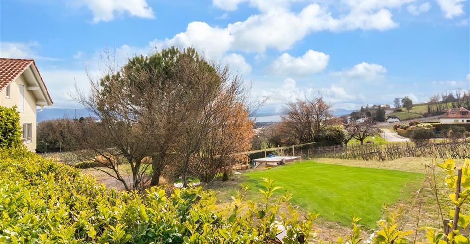 Cette villa moderne à Aubonne, Suisse, offre une surface habitable généreuse de 150 m² et une surface utile de 225 m² réparties sur trois étages. La maison dispose de 5 chambres et trois salles de bains, ce qui la rend idéale pour les grandes familles ou ceux qui aiment recevoir des invités. L’intérieur se caractérise par son design moderne et minimaliste. De grandes fenêtres dans diverses pièces, y compris des portes vitrées du sol au plafond dans certaines zones, permettent une lumière naturelle abondante et offrent des vues sur la verdure environnante. Les espaces de vie du rez-de-chaussée sont dotés de carrelage aux tons neutres, créant une apparence cohérente et contemporaine. Le salon – salle à manger est particulièrement remarquable, avec son agencement spacieux et son accès direct à un espace extérieur par des portes coulissantes en verre. Un élément distinctif est la cheminée entourée d’un mur d’accent sombre saisissant, ajoutant chaleur et caractère à l’espace. Une terrasse d’environ 30 m² ajoute un espace extérieur supplémentaire donnant sur les vignobles et le lac. Au premier étage, la zone chambre avec 4 chambres présente un parquet en bois de teinte sombre. Les salles de bains sont élégantes et fonctionnelles et ont été récemment complètement rénovées, mettant en valeur des carreaux grand format, une douche à l’italienne avec une paroi en verre, et des fenêtres pour une ventilation naturelle. De cet étage, vous avez également accès à un balcon avec vue imprenable sur le lac jusqu’à Genève. La propriété comprend également un sous-sol entièrement aménagé avec une grande salle de jeux de 30 m², une buanderie et de nombreux espaces de rangement, y compris une zone de placard dédiée. Avec ses nombreuses chambres, ses espaces de vie variés et son design réfléchi, cette propriété offre un mélange de confort, de fonctionnalité et d’esthétique moderne, adaptée à une vie contemporaine dans la pittoresque ville suisse d’Aubonne. Nichée entre le lac Léman et les montagnes du Jura, Aubonne est une ville pittoresque connue pour son charme historique, ses vignobles et ses paysages à couper le souffle. Avec ses rues pavées, son château médiéval et ses vues panoramiques, Aubonne offre un parfait mélange de patrimoine et de vie moderne. Idéalement située à seulement 25 minutes de Genève et de Lausanne, la ville offre une atmosphère paisible tout en restant bien connectée aux centres urbains. Les habitants profitent des commerces locaux, des restaurants, d’excellentes écoles locales et internationales, ainsi que d’activités de plein air, y compris la randonnée dans l’Arboretum du Vallon de l’Aubonne à proximité. Aubonne est un lieu idéal pour ceux qui recherchent un mode de vie serein avec un accès facile à la région dynamique de La Côte.