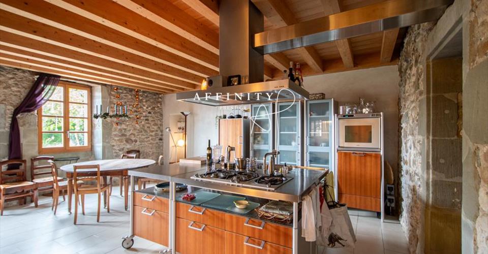 Spacieuse maison à vendre à Sézegnin, Charmante demeure du 18ème d’une surface utile de 500 m2 proche de Genève. Une empreinte de sérénité. L’entrée et le salon spacieux, baignés de lumière, vous accueille avec ses poutres apparentes et son charme d’antan. La cuisine s’ouvre sur un jardin intime, de belles chambres spacieuses, véritable havre de paix. Les pièces bénéficient d’un volume aéré et raffiné avec une belle luminosité. Un lieu unique où chaque détail a été pensé pour allier histoire, confort et modernité. Des espaces polyvalents, à la fois fonctionnels et inspirants, offrent de multiples possibilités : un bureau lumineux pour travailler en toute tranquillité, une salle polyvalente idéale pour vos loisirs ou moments de convivialité. Ces pièces modulables, au caractère unique, s’adaptent à vos envies et besoins, tout en conservant l’élégance. À l’extérieur, un jardin paysagé vous invite à la détente, parfait pour profiter des beaux jours. Une cour intérieure pavée, pleine de charme. Un véritable écrin de verdure, propice aux réceptions ou aux moments de quiétude, où authenticité et raffinement se rencontrent. Plusieurs places de stationnement extérieurs.