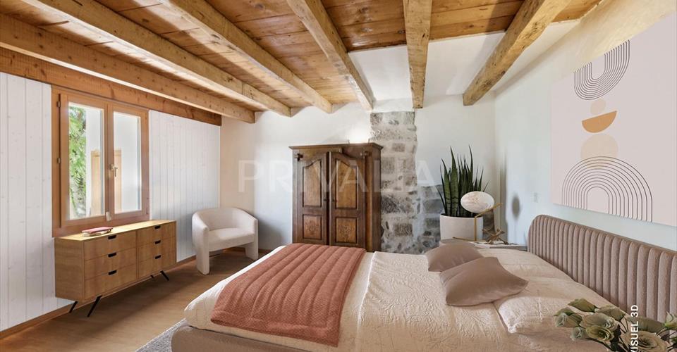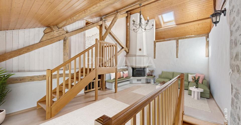 Située dans le village pittoresque d’Athenaz, au coeur de la campagne genevoise, cette charmante maison villageoise séduit par son authenticité, ses volumes généreux et son environnement verdoyant. Construite vers 1890 et rénovée en 2000, elle se niche en plein coeur du village, offrant un cadre de vie paisible, idéal pour une famille en quête de nature et de tranquillité, tout en restant à proximité de Genève. Distribuée sur plusieurs demi-niveaux, cette propriété d’environ 180 m² habitables bénéficie d’une exposition plein sud et offre un confort de vie rare dans un environnement villageois authentique. Le jardin entièrement clôturé, magnifiquement arboré, ainsi que les espaces extérieurs bien pensés, invitent à la détente et à la convivialité. Cette maison se distribue de la manière suivante : Rez-de-chaussée : – Entrée principale avec vestiaire et espace de rangement sous l’escalier – Cuisine entièrement équipée avec coin repas et accès direct à la terrasse et au jardin – Poile à bois – Séjour / salle à manger conviviale – Chambre à coucher – Salle de douche avec WC et branchement pour lave-linge/sèche-linge – Salle de bains supplémentaire avec WC et double vasque – Local technique avec boiler récent (remplacé il y a 5 ans) Rez supérieur : – Chambre à coucher ou bureau – Chambre à coucher avec espace dressing et accès à un balcon Étage : – Vaste séjour avec cheminée fonctionnelle – Grande chambre à coucher avec armoires encastrées et accès au grenier Les extérieurs comprennent une jolie terrasse et un grand jardin d’environ 165 m², entièrement clôturé. Le stationnement est assuré par une place extérieure devant la maison, ainsi que plusieurs places extérieures. Cette propriété séduit par son charme, ses beaux volumes, son potentiel d’aménagement (possibilité de créer jusqu’à 4 chambres), et sa localisation idéale entre nature et ville. Quelques travaux de modernisation permettront de révéler pleinement tout son potentiel. Un bien rare à découvrir, parfait pour les amoureux d’authenticité et de sérénité, au coeur de la campagne genevoise.
