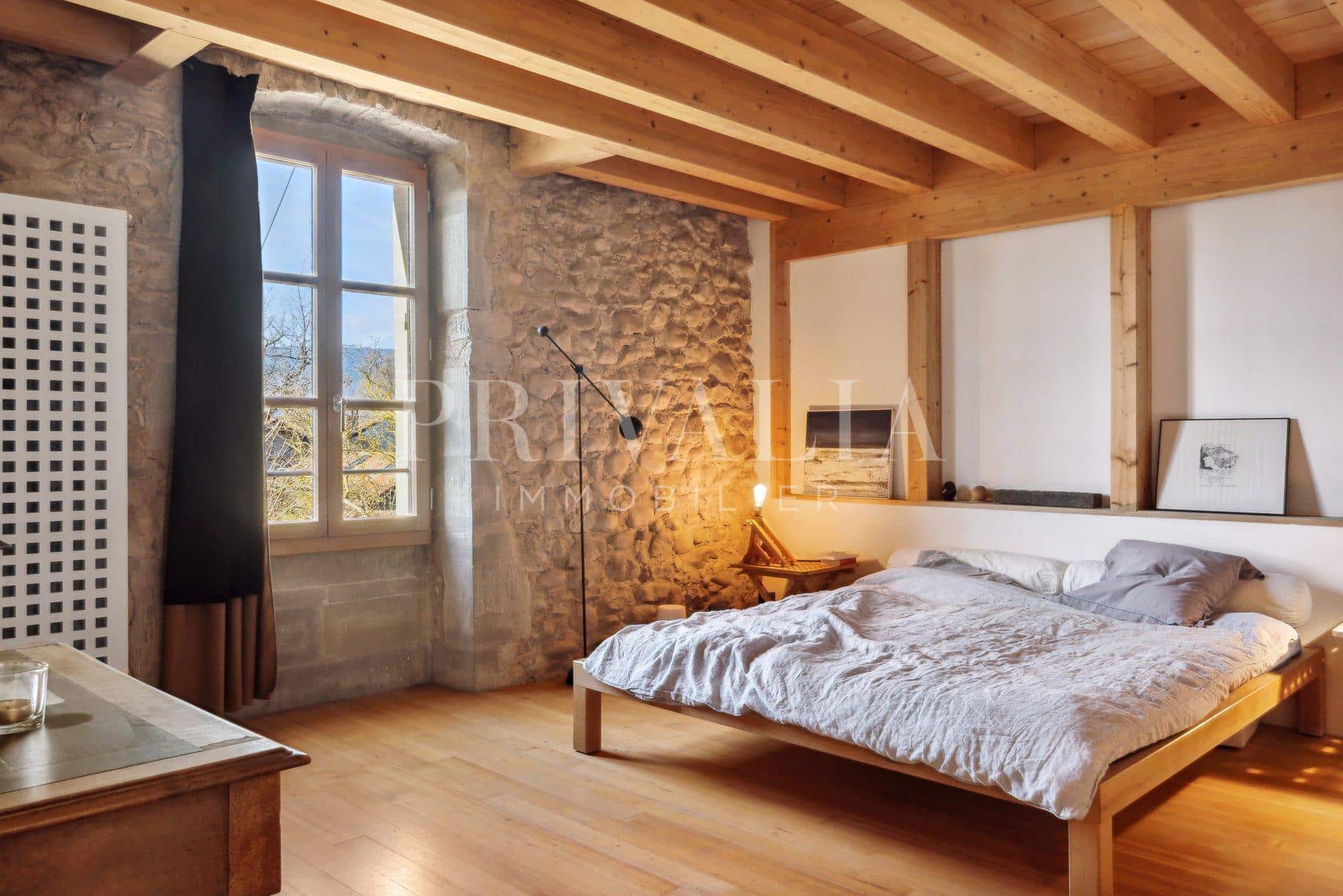À l’étage, deux spacieuses chambres à coucher, une loggia, une salle de bain/douche, un WC séparé, ainsi qu’un espace à proximité de l’escalier pouvant servir de bureau et une pièce polyvalente vous attendent.