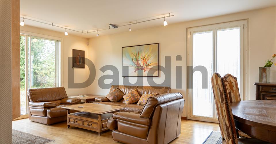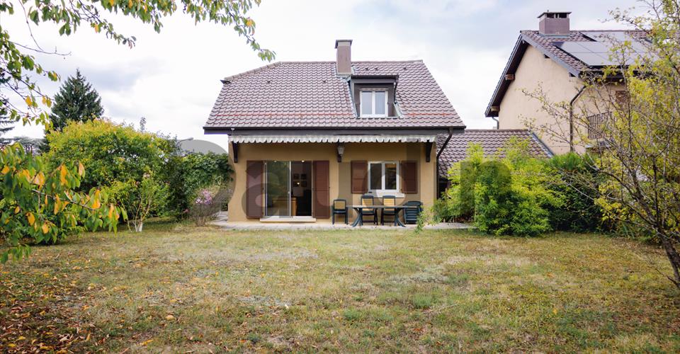 Idéalement située au cœur du village de Bernex, entre vignes, champs et paysages ouverts, cette maison offre un cadre villageois préservé tout en restant proche des commodités urbaines. La commune dispose de plusieurs écoles, crèches et infrastructures publiques, ainsi que de commerces de proximité. La ligne de tram 14 relie directement le centre-ville de Genève en moins de 20 minutes, facilitant la vie quotidienne des habitants. L’ensemble s’inscrit dans une atmosphère résidentielle calme, entourée de jardins et de champs qui évoquent la douceur de la campagne genevoise. La maison s’ouvre sur un vaste jardin joliment arboré, baigné de lumière grâce à sa triple exposition. En prolongement, un jardin commun comportant une aire de jeux, appartenant à la copropriété, vient compléter l’espace extérieur et apporte une dimension conviviale et familiale. La propriété se distribue comme suit : Rez-de-chaussée Entrée avec rangements ; WC visiteurs ; Grand séjour salon salle-à-manger ; Cuisine équipée. Étage Quatre chambres à coucher dont une avec salle de bains attenante ; Dégagement ; Salle de douche ; WC séparé. Sous-sol Local technique avec local citerne ; Abri PC ; Grande pièce polyvalente ; Buanderie. Extérieurs Grand jardin ; Box simple avec mezzanine ; 1 place extérieure.