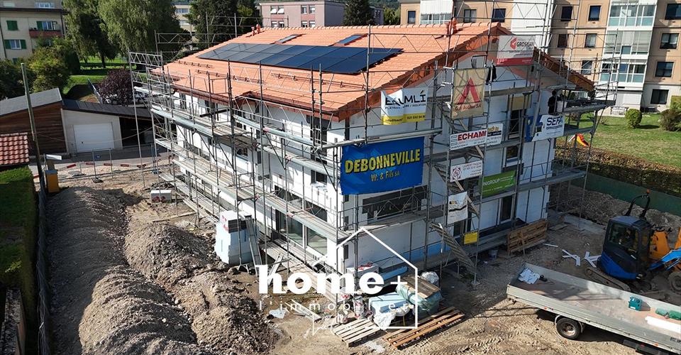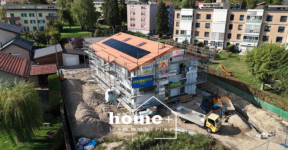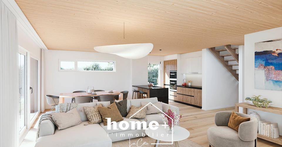 Idéalement situées dans un quartier résidentiel calme, en plein centre de Bière, ces deux villas jumelles en cours de construction offrent chacune un spacieux logement traversant de 7 pièces pour une surface habitable de 155 m² (lots A et B). L’accès se fait par une entrée commune desservant un corridor distribuant les deux habitations, chacune bénéficiant de son entrée indépendante. Depuis ce hall, on accède également au sous-sol, où chaque villa dispose de sa cave et d’un généreux espace de rangement d’environ 20 m². Au rez-de-chaussée, un vaste espace de vie de plus de 40 m² accueille une cuisine ouverte, un séjour lumineux avec accès direct à la terrasse et au jardin. S’ajoutent une chambre, un WC visiteurs ainsi qu’un local buanderie. À l’étage, se trouvent deux chambres séparées par une salle de bains, une suite parentale avec dressing et salle d’eau attenante, ainsi qu’un grand espace polyvalent pouvant faire office de bureau. Les combles, d’une surface de 33 m² (non comprise dans la surface habitable), offrent des possibilités d’aménagement supplémentaires selon vos besoins. Les extérieurs se distinguent par leurs généreux jardins privatifs : environ 180 m² pour le lot A et plus de 350 m² pour le lot B. Chaque villa bénéficie d’un couvert à voiture et de plusieurs places de parc extérieures. Prix dès CHF 1’275’000.00