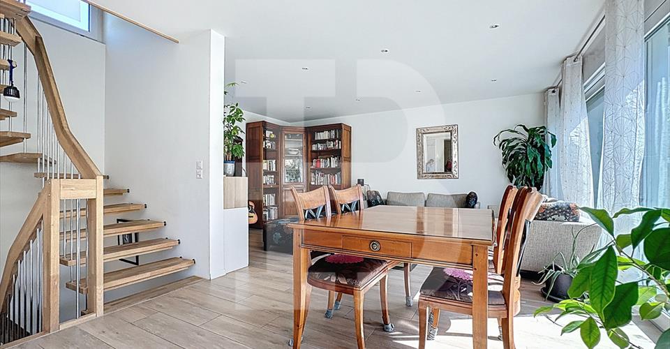 En co-exclusivité, proche du coeur du village de Vésenaz, nous vous proposons cette demeure, érigée en 2018, qui saura vous séduire par ses volumes, sa luminosité et son potentiel. D’une surface utile de 210 m2, la villa se distribue comme suit: Le rez-de-chaussée se compose d’un sas d’entrée avec vestiaire, d’un vaste séjour comprenant une cuisine américaine, un bel espace repas s’ouvrant sur l’extérieur et d’un joli salon. Des toilettes visiteurs avec lave-mains complètent de plateau. À l’étage se nichent une master avec salle de douche complète en suite ainsi que deux chambres de bonne taille se partageant une salle de bains avec WC. Le sous-sol offre un bel espace dont un salon baigné de lumière grâce à son patio ainsi qu’un bureau avec fenêtre. Une salle de douche avec WC, un grand réduit ainsi qu’un espace buanderie complètent ce niveau. Trois places de parking, dont deux couvertes, viennent parfaire ce bien à ne laisser filer sous aucun prétexte. (Soucieux de vous accompagner au mieux dans votre projection, certaines photos peuvent être le fruit d’un home staging virtuel. Pour d’autres photos ou toute autre information rdv sur Bertoc-Immo.ch)
