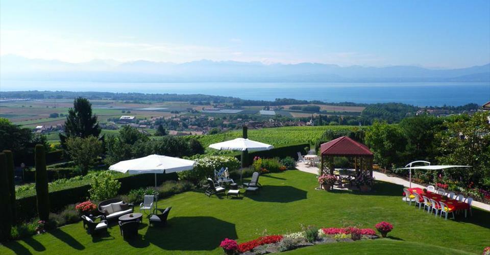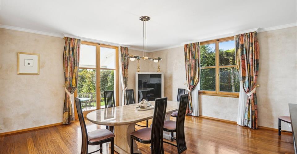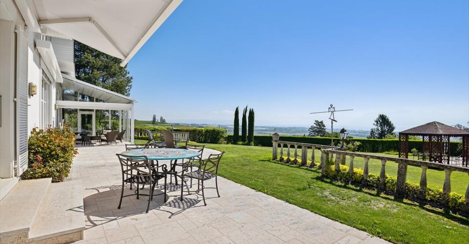 Situation exceptionnelle pour cette propriété individuelle. Implantée sur une parcelle joliment arborée de 1800 m², elle bénéficie d’un magnifique dégagement sur le lac Léman et la chaîne des Alpes. Privacité et calme absolu sont aussi les avantages que ce bien vous apportera. Construite en 1994, la maison offre une surface habitable d’environ 400 m² distribuée sur 2 niveaux plus un sous-sol complet. La villa a été conçue avec des matériaux de standing dans un style élégant et classique. Vous serez séduits par la grandeur des pièces et des volumes qu’elle peut offrir. En effet, l’hauteur sous plafond peut aller dans certaines pièces jusqu’à 6 mètres de hauteur. Les espaces de vie sont multiples et spacieux. Un salon de réception avec une impressionnante cheminée du XVe, le salon TV ou encore la salle à manger sont les endroits propices pour accueillir de la famille ou des invités. Les grandes baies vitrées face sud permettent de profiter d’une vue imprenable sur le lac Léman depuis pratiquement toutes les pièces. Grâce à son orientation, cette propriété jouit d’une belle luminosité. L’espace nuit se compose de 3 chambres à coucher dont une chambre de Maître, accompagnée de son dressing et de sa salle de bains. Un studio est également à disposition, idéal pour recevoir une jeune fille au pair à domicile. Le sous-sol est très bien équipé proposant un garage double, une salle de jeux ou fitness, une cave à vins climatisée ou encore un sauna agrémenté d’une douche. À noter que la villa a été soigneusement et régulièrement entretenue par les propriétaires. Située sur la charmante commune de Féchy, la propriété s’implante dans un quartier résidentiel de villas, dans un environnement calme et privatif. Vous profiterez d’une vue imprenable sur le lac et d’une localisation privilégiée à quelques minutes de l’axe autoroutier et des facilités telles que commerces, écoles publics ou privées “Institut le Rosey”, restaurants et transports en commun. À mi-chemin entre Rolle et Aubonne, vous serez en 20 minutes à Lausanne et à 30 minutes de Genève et de son aéroport internationale. Un lieu de vie exclusif et recherché par de nombreuses familles. Cette maison de standing ne vous laissera pas indifférent !
