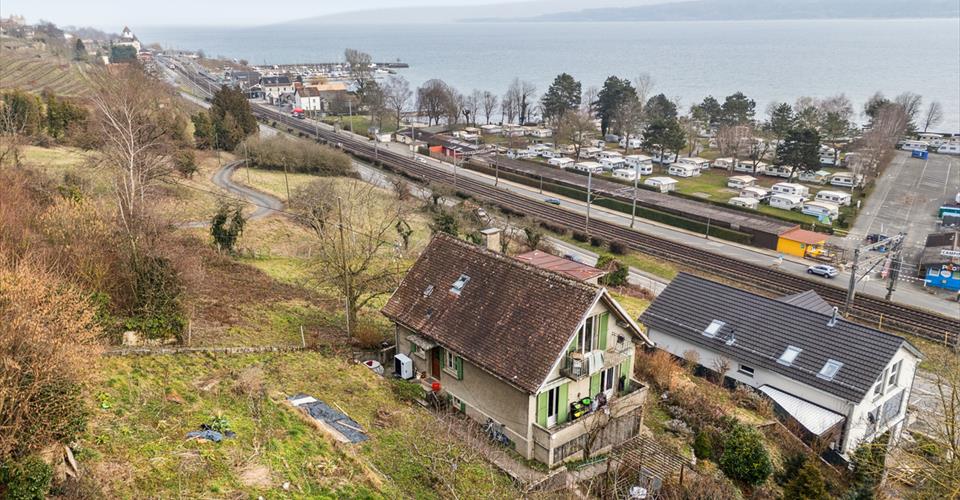En exclusivité chez Cardis, retrouvez cette maison à rénover de deux appartements à flanc de coteaux sur la commune de Grandson. Avec une vue imprenable sur le lac, cette propriété vous offre un potentiel intéressant. Construite en 1942, elle est restée dans la famille du propriétaire actuel jusqu’à ce jour. Des rénovations ont été effectuées en 1961, et des améliorations récentes incluent l’installation d’une pompe à chaleur en 2021 ainsi que le remplacement des fenêtres et portes-fenêtres par du triple vitrage. Cette maison est constituée de la manière suivante: Appartement de 2.5 pièces sous les combles actuellement loué: Une grande chambre avec accès balcon Une cuisine fermée Un salon fermé Un petit WC douche Un petit réduit Appartement de 4.5 pièces au rez actuellement loué aussi: Deux chambres avec des accès balcon ouest Une chambre au sous-sol supplémentaire Une cuisine fermée Salon avec accès véranda Une salle de bains avec baignoire ainsi qu’un WC séparé 2 Places de parcs extérieures complètent ce bien. N’hésitez pas à me contacter si vous souhaitez plus d’informations ou convenir d’une visite
