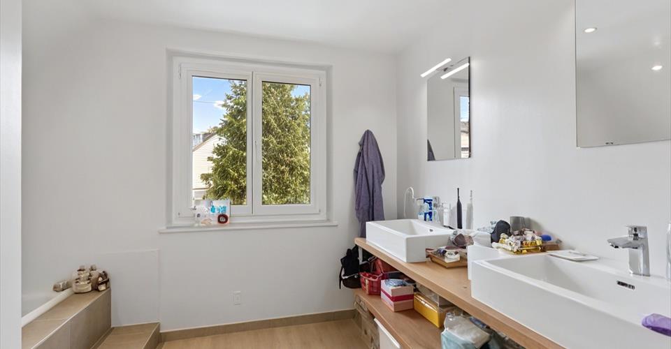 Objet coup de cœur ! Sise sur une parcelle de plus de 1000m2 joliment arborée, cette maison individuelle est située au sein d’un quartier calme et agréable, à proximité du Centre-Ville ainsi que des axes principaux et autoroutiers. Elle totalise un volume de plus de 1050m3 sur 4 niveaux (sous-sol compris), pour une surface habitable d’environ 200m2, harmonieusement répartie. Composée de 7 pièces pour 5 chambres à coucher, elle se répartie comme suit : RDC Hall d’entrée avec porte en bois massif Salon séjour en “L” avec cheminée et deux accès à la terrasse Grande cuisine aménagée et équipée prolongé d’une véranda Une pièce aménageable en chambre ou bureau W-c visiteurs 1er 4 chambres à coucher dont une suite parentale, Une salle d’eau avec douche et w-c, Une salle de bain avec douche, baignoire et w-c séparés. Combles Aménagés avec une pièce utilisable et une pièce de stockage. Sous-Sol total Local technique, Cave à vin, Salle d’eau avec douche et w-c séparés, Grande pièce aménageable, Abri P-C. Construction traditionnelle vaudoise des années 1980, cette propriété a bénéficié de rénovations jusqu’en 2019, notamment : Système de chauffage PAC air-eau, Fenêtres triple vitrage, Panneaux solaires, Sols du 1er étage, Toutes les salles d’eau et w-c. Actuellement louée, la fin du bail est prévue pour le 1er octobre 2025. Contactez nous pour plus d’informations ou pour organiser une visite !