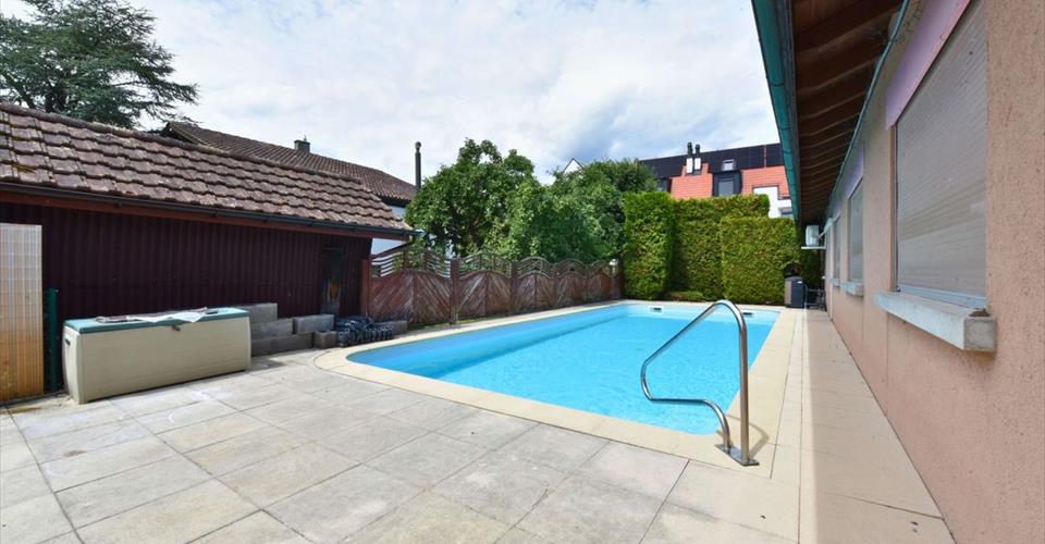 À 5 minutes de Yverdon-les-Bains et de Orbe, découvrez cette villa mitoyenne de 145 m² à Mathod, baignée de lumière grâce à son exposition sud-ouest, pour vos longues soirées au bord de la généreuse piscine. Le rez-de-chaussée propose une belle pièce de vie avec un grand salon chaleureux, équipé d’une cheminée, une cuisine en chêne massif entièrement agencée, trois chambres, une salle de bain, ainsi qu’un WC visiteurs. Côté extérieur, vous profitez d’un jardin généreux avec pergola, d’une piscine creusée chauffée, et d’une terrasse de 10 m² à l’avant, au nord de la maison – parfait pour savourer vos fins de journée au frais. À l’étage, deux grandes chambres, une salle de bain supplémentaire et des combles isolés et aménagés, offrant un espace idéal pour un bureau ou une chambre supplémentaire. Le sous-sol complète ce bien avec une buanderie, un local technique et une cave de 20 m² aménageable, idéale pour un bureau, une salle de sport, une chambre d’amis ou tout autre espace selon vos besoins. Enfin, la maison dispose de 7 places de parc (2 intérieures, 5 extérieures) et d’une borne de recharge pour véhicule électrique. Panneaux solaires installés pour une performance énergétique optimale. Les + : Exposition sud-ouest Piscine chauffée avec traitement automatique salin Jardin avec pergola 5 chambres + combles isolés et aménagés + sous-sol aménageable 7 places de parc et borne électrique Panneaux solaires Un bien rare à Mathod, alliant confort, espace et autonomie énergétique. Une visite s’impose, contactez-nous sans attendre!