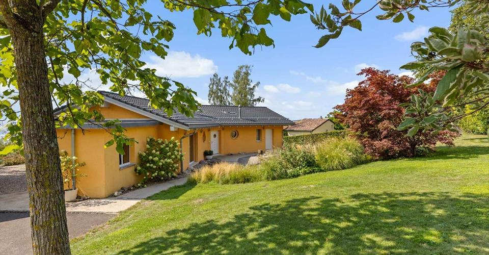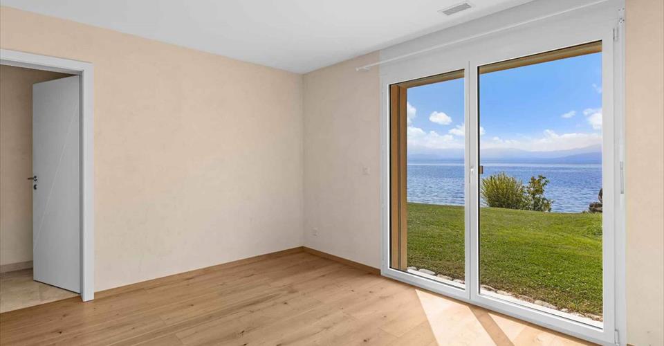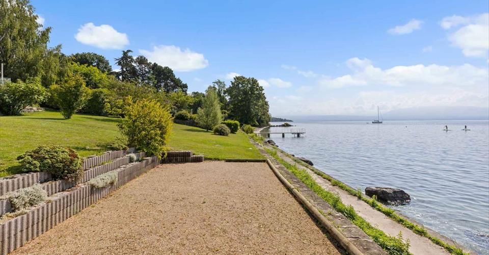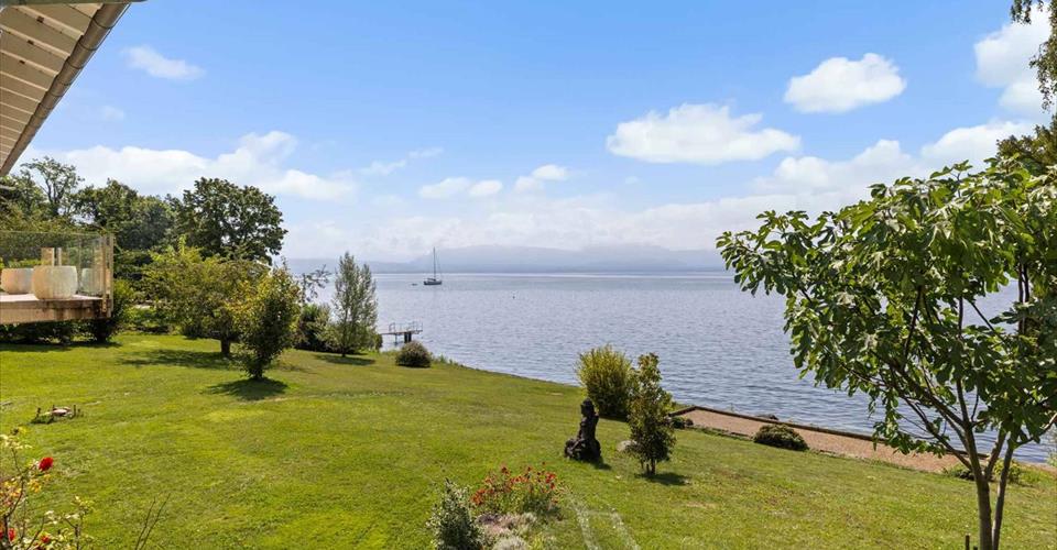 Nichée sur les rives du lac Léman, cette propriété d’exception s’étend sur un terrain de plus de 2 500 m2, offrant un cadre de vie rare et privilégié. La vue panoramique sur les Alpes et l’accès direct et privé au lac en font un lieu idyllique pour les amoureux de nature et de tranquillité. Édifiée en 2011, cette villa écoresponsable incarne une parfaite harmonie entre modernité et respect de l’environnement. Elle est équipée de panneaux solaires thermiques, de capteurs solaires performants et a été construite avec des matériaux durables, soulignant une démarche écologique forte. La maison, baignée de lumière grâce à ses grandes baies vitrées orientées plein sud, se déploie sur deux niveaux pour une surface habitable d’environ 220 m2. Son agencement généreux offre une immersion totale dans un environnement naturel d’exception. Par ailleurs, le potentiel d’agrandissement ou la possibilité de construire une nouvelle demeure d’environ 500 m2 permet d’envisager de nouveaux projets, personnels ou d’investissement. À l’extérieur, le jardin paysager regorge d’essences variées, mêlant arbres majestueux, massifs fleuris et espaces de détente. Une terrasse dominant le lac invite à la contemplation, tandis qu’un potager permet de cultiver ses propres légumes. Un petit étang ajoute une note poétique à l’ensemble, et un terrain de pétanque vient compléter cet espace de loisirs. Côté praticité, la propriété dispose d’un abri couvert pour trois véhicules, d’une cour intérieure spacieuse pouvant accueillir plusieurs voitures, d’une entrée privée sécurisée par un portail motorisé et d’un mur anti-bruit assurant une sérénité absolue. Cette propriété unique reflète ce que l’on peut attendre d’une vie au bord du lac. Son environnement et son emplacement exclusif est rare sur le marché.