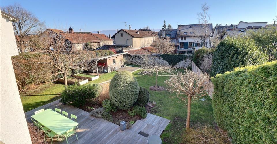 Découvrez cette propriété unique, située au cœur du vignoble genevois, combinant élégance, charme et confort moderne. Profitez d’un environnement calme et verdoyant tout en restant à seulement 15 minutes de la gare Cornavin grâce au Léman Express. Entièrement rénovée en 2009 avec des matériaux de qualité, cette ancienne bâtisse offre une surface habitable d’environ 260 m², répartie sur trois niveaux, et un total d’environ 300 m² utiles. De beaux volumes qui profitent d’une belle lumière naturelle, un aménagement moderne qui respecte le caractère authentique de cette bâtisse. Elle se compose comme suit : – Un hall d’entrée avec dressing et WC visiteur donnant accès à un vaste séjour avec cheminée. – Une salle à manger avec un accès à la terrasse ainsi qu’une spacieuse cuisine entièrement équipée. – A l’étage, 3 chambres confortables, dont une suite parentale avec dressing et salle de bains/douches. – Une salle de bains vient compléter le 1er étage. – Les combles aménagés, peuvent accommoder un espace bureau ou de loisirs. – Le sous-sol inclut une cave à vin, un local technique et un espace de rangement. Jardin soigneusement entretenu pour profiter d’un écrin de verdure avec un espace détente et une intimité totale. Deux terrasses de latte en bois (IPE). Chauffage : Pompe à chaleur géothermie et des panneaux solaires thermiques English : Discover this unique property in the heart of Geneva’s vineyards, combining elegance, charm and modern comfort. Take advantage of the peaceful, leafy surroundings, while remaining just 15 minutes from the Cornavin train station thanks to the Léman Express. Completely renovated in 2009 using quality materials, this old building offers around 260 m² of living space, spread over three levels, for a total of around 300 m² of usable floor space. The spacious rooms benefit from plenty of natural light, and the modern layout respects the authentic character of the building. The property is disposed as such : – An entrance hall with dressing room and guest WC leading to a large living room with fireplace. – A dining room with access to the terrace and a spacious, fully-equipped kitchen. – Upstairs, 3 comfortable bedrooms, including a master suite with dressing room and bathroom/shower. – A bathroom completes the 1st floor. – The converted attic space could be used as an office or leisure area. – The basement includes a wine cellar, machine room and storage space. The carefully tended garden provides a green setting for relaxation and total privacy. Two wooden slatted terraces (IPE). Heating: Geothermal heat pump and solar thermal panels.