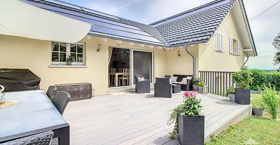 St-Oyens, charmante commune d’environ 470 habitants située entre le vignoble de La Côte et le pied du Jura. La localité se trouve à 1.5 km de la petite ville de Gimel qui offre toutes commodités, telles qu’un bureau de Poste, une banque, une pharmacie, un magasin d’alimentation ainsi que divers autres commerces de proximité. A mi-chemin entre Lausanne et Genève, c’est un lieu idéal, en pleine nature pour poser ses valises ! Cette propriété de 7 pièces d’une surface d’env. 168 m² nette habitable, dont la distribution des pièces est détaillée en page suivante se compose de belles surfaces lumineuses donnant sur un jardin et diverses terrasses, permettant de profiter du soleil tout au long de la journée et de passer de belles soirées entre famille ou amis. Le bien est complété d’une place de parc couverte ainsi que 3 places extérieures. Les avantages de cette maison : – Grande pièce à vivre lumineuse avec belle hauteur de plafond & accès à la terrasse principale d’une surface de 42.5 m². – Cuisine entièrement agencée avec four standard et four à vapeur ainsi qu’un local économat. – Terrasse au niveau de la porte-fenêtre de la bibliothèque & terrasse avec cabanon devant la porte d’entrée du bien. – Jardin de 385 m². – Moustiquaires sur toutes les ouvertures droites. – Rénovation de la toiture en 2019 – Isolation périphérique et peinture extérieure récentes. – Bien autonome en matière d’électricité. *** Cubage ECA – 1’140 m³ *** Impôt foncier : 0.80 ‰ *** En recherche de quiétude, appelez-nous sans délai pour une visite des lieux ! *** Retrouvez toutes nos annonces exclusivement sur IMMOBILIER.CH, le portail des professionnels romands de l’immobilier.