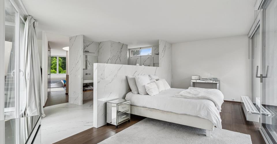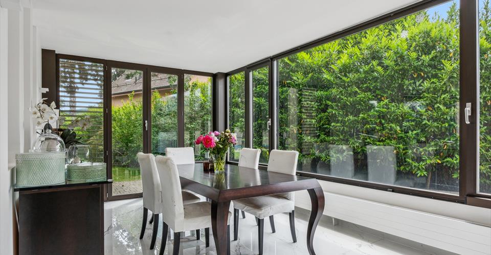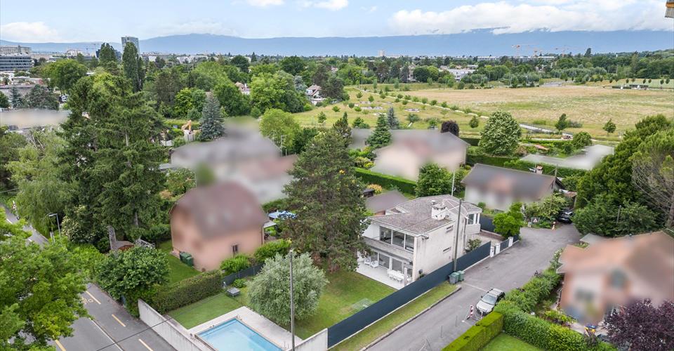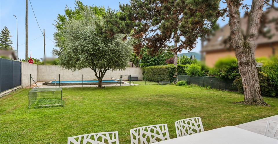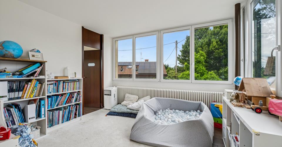 📍 Localisation idéale | 🌿 Parcelle de +1’000 m² | 🛏️ 4 chambres | 🏊 Piscine | 🏔️ Vue Mont-Blanc Située dans un écrin de verdure, à proximité immédiate de toutes les commodités, cette villa d’architecte au charme vintage des années 1970 séduit par son style unique, ses volumes généreux et sa luminosité exceptionnelle. Partiellement rénovée en 2020, elle offre un cadre de vie paisible et élégant, à seulement quelques minutes du centre. Disposition intérieure : Rez-de-chaussée lumineux avec vaste pièce de vie, salon et salle à manger séparés par une cloison semi-ouverte Cuisine fonctionnelle attenante, prolongée par une véranda baignée de lumière Chambre indépendante idéale pour bureau ou invités WC visiteurs À l’étage : Suite parentale spacieuse avec dressing, salle de bains complète (baignoire + douche + WC) et balcon privé avec vue sur le Mont-Blanc une chambre avec espace jeux attenant Accès à une grande terrasse privative, parfaite pour profiter du calme Sous-sol entièrement aménagé : Grande salle de jeux Deux caves, chaufferie, salle de douche et abri atomique Potentiel d’aménagement : salle de sport, home cinéma, espace bien-être… Extérieurs : Piscine entourée d’un vaste jardin, propice à la détente Garage double indépendant Droits à bâtir restants : possibilité d’extension selon vos projets ✨ Un bien rare sur le marché, alliant cachet, fonctionnalité et potentiel d’évolution. A découvrir sans tarder. 📞 Contactez-nous pour organiser une visite !