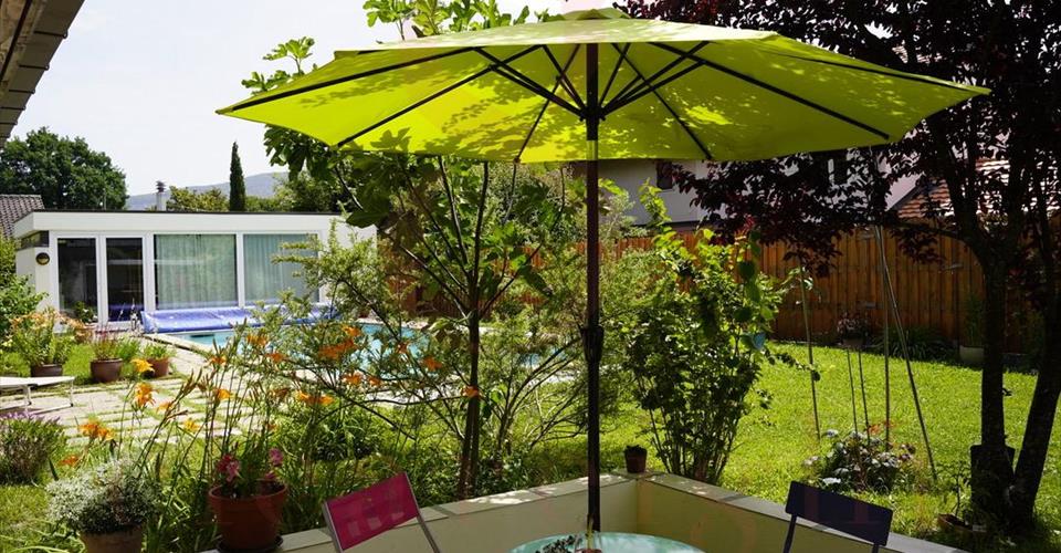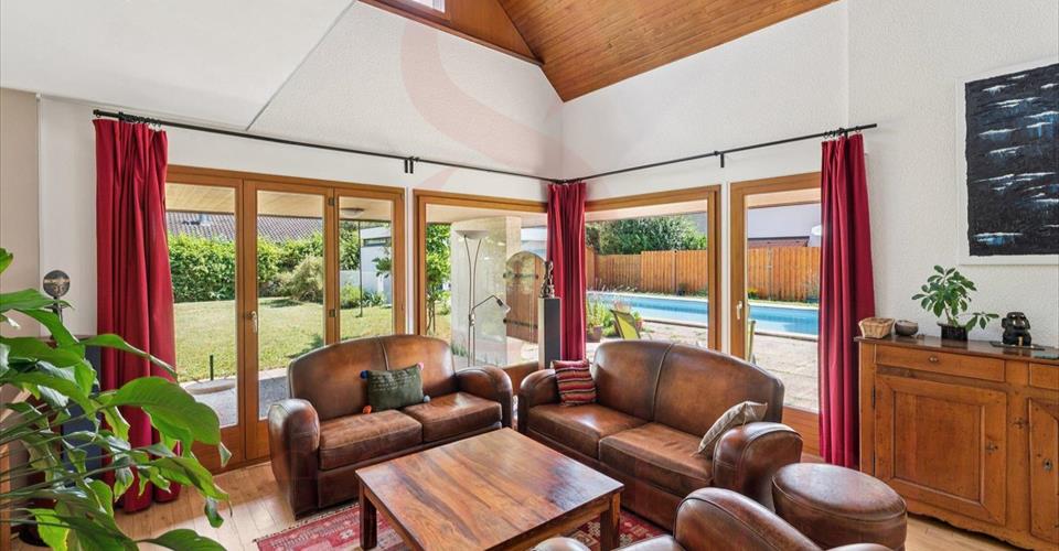 Cette superbe maison d’architecte individuelle est posée dans un écrin de verdure, au coeur d’un quartier résidentiel calme et recherché, sur la rive gauche de Genève. Un lieu où chaque journée commence avec la lumière du matin filtrant à travers les arbres, et se termine sur la terrasse à deux pas de la piscine. Édifiée sur une belle parcelle plane de 1’082 m², cette villa des années 80 propose environ 210 m² habitables et 320 m² de surface utile, complétée par une maison annexe offrant 42 m² habitables et 84 m² utiles. La distribution actuelle séduit déjà : Au rez-de-chaussée, les espaces de vie s’articulent autour d’un hall avec rangements, d’une salle à manger baignée de lumière, d’une cuisine ouverte et d’un salon chaleureux en double hauteur. Une chambre à coucher, une salle de bains ainsi qu’un WC séparé complètent cet étage avec harmonie. À l’étage, trois chambres ainsi qu’un espace bureau ouvert sur le séjour en contrebas offrent un cadre fonctionnel et lumineux. Une salle de bains spacieuse vient compléter cet étage avec confort. Au sous-sol, une vaste pièce polyvalente offre de nombreuses possibilités d’aménagement : salle de jeux, home cinéma ou espace de sport, selon vos envies. S’y ajoutent une buanderie, plusieurs espaces de rangement, un abri PC, une cave à vin, le local technique, ainsi qu’une salle dédiée à la musique avec salle de douche qui complète parfaitement cet étage. À l’extérieur, tout est réuni pour profiter pleinement des beaux jours : une piscine, deux terrasses abritées avec espace repas, un jardin soigneusement arboré, ainsi que l’annexe pouvant faire office de pool house, d’atelier ou de logement d’appoint. Un garage et plusieurs places de parc complètent ce cadre de vie privilégié. Une villa pleine de vie et de promesses, qui n’attend que votre regard pour devenir exceptionnelle. Ce bien rare mérite votre attention. Régulièrement entretenue et partiellement rénovée entre 2008 et aujourd’hui, cette propriété respire la solidité, la lumière et la sérénité. Parmi les nombreuses améliorations apportées au fil des années, on peut citer : – 2008-2012 : remplacement des fenêtres, installation de stores à lamelles dans les chambres, mise à jour de plusieurs appareils électroménagers (lave-linge Miele, congélateur Electrolux), pose de deux poêles (annexe et salon), rénovation des peintures et installation de bulbes thermostatiques sur les radiateurs. – 2013-2014 : rénovation complète de la douche au sous-sol, pose de parquet en frêne et palissandre dans les chambres, rénovation complète de la cuisine et pose d’un nouveau parquet en chêne au rez-de-chaussée. – 2014-2015 : installation d’une chaudière à condensation au mazout, révision de la citerne avec ajout d’une double paroi. – 2016-2021 : pose de nouvelles fenêtres à l’annexe, rénovation complète de la salle de douche du 1er étage, agrandissement d’une chambre avec nouveau parquet, remplacement des électroménagers (frigo Liebherr, cuisinière Bosch, lave-vaisselle Bosch), installation de vélux, isolation complète du toit avec remplacement des tuiles, chéneau artisanal en cuivre et pose de panneaux solaires. – 2023-2025 : réfection complète de la piscine avec nouveau local technique, achat d’un robot aspirateur, rénovation de la salle de bain et des WC du rez-de-chaussée, peintures intérieures et ravalement complet des façades de la maison et des annexes.
