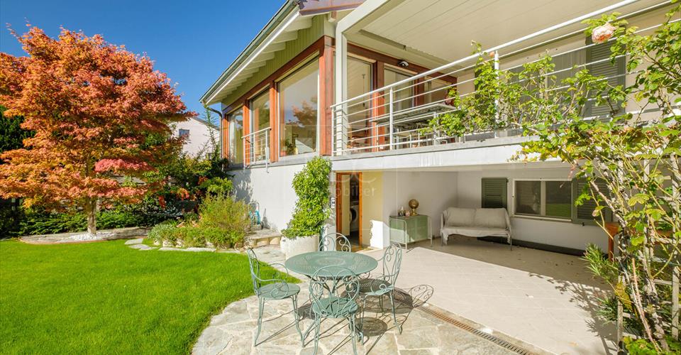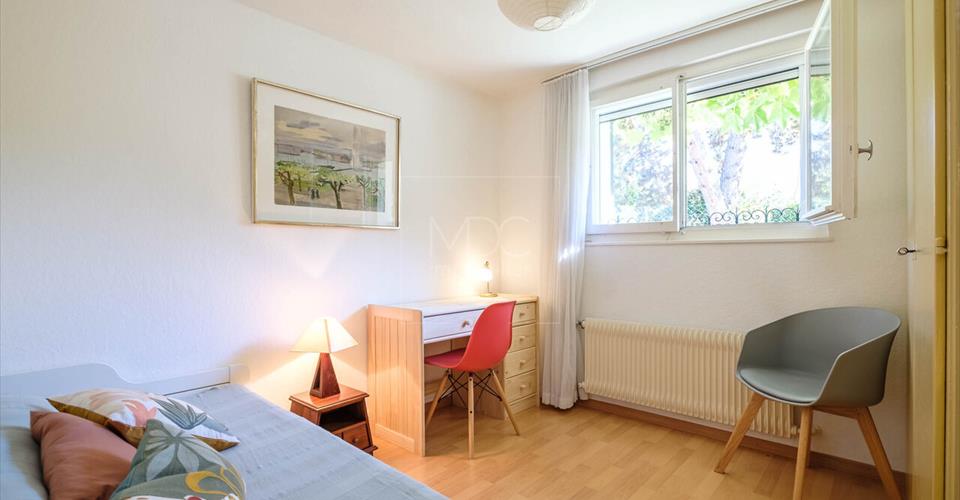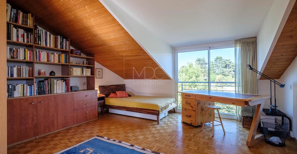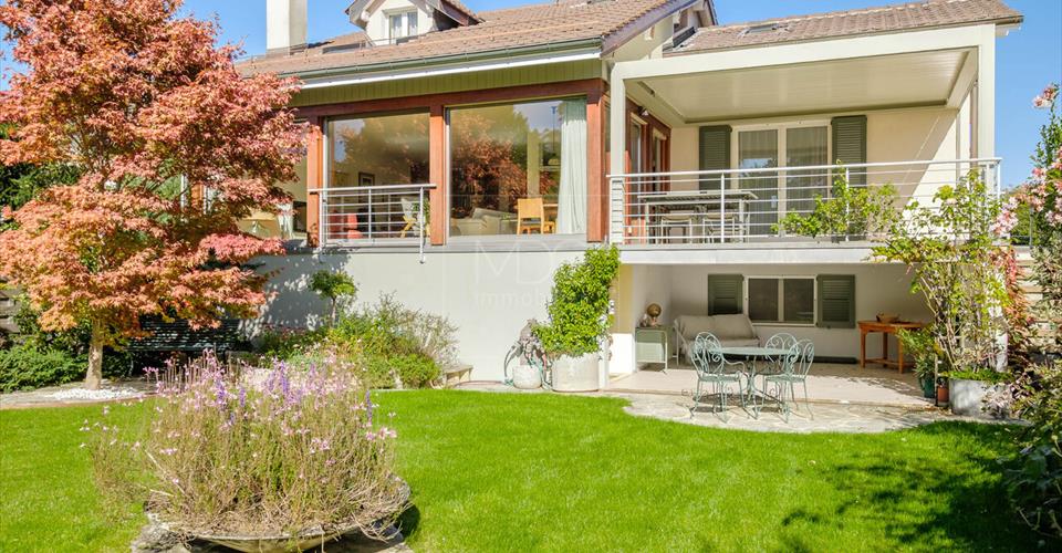 De 7 pièces, env. 141,5 m2 habitables, sur une parcelle de 627 m2, cette jolie villa exposée sud-ouest bénéficie d’une exposition optimale à chaque heure de la journée. Elle dispose d’une belle pièce de vie donnant sur la terrasse et d’un beau jardin bien entretenu. A 10 min. de l’autoroute Année de construction : 1964 Rénovée entre 1987 et 2025 : Grenier, WC, salle de bains, couloir, escaliers, volets, fenêtres et encadrements, chambre, douche, contrôle et entretien toiture et canalisations, chaudière, rafraichissement WC et salle de bains, chambres et fenêtre du bureau. Surface habitable : env. 141.5 m2 Surface utile : env. 225 m2 Surface parcelle : 627 m2 Oreintation sud-ouest Chauffage : Mazout/radiateurs Nombre de pièces : 7 Chambres : 4 1 bureau 2 Salles de bains 1 WC visiteurs Lumineuse Belle pièce de vie d’environ 50 m2 Cuisine fermée 2 Cheminées Stores électriques et volets Grenier Buanderie Cave Pergola bioclimatique avec store sur les flancs Terrasse dans le jardin Un espace jeu protégé pour les enfants Joli jardin très bien entretenu Garage simple avec accès direct dans la maison 1 place extérieure Proche de toutes les commodités Disponibilité à convenir ACCÈS A 10 min de l’autoroute A 15 min du centre-ville de Genève A 30 min de l’aéroport COMMERCES À proximité TRANSPORTS À 5 min à pied du bus A 10 min à pied du tram 12, 17 A 15 min à pied du CEVA REZ INFÉRIEUR Entrée avec rangements, deux chambres, salle de douche, buanderie, local technique, cave, garage, espace de stockage, espace jeux couvert pour les enfants REZ SUPÉRIEUR Grande pièce de vie d’environ 50 m2 avec cheminée, une cuisine fermée, une chambre, un bureau, une salle de bains, un WC visiteurs COMBLES Une grande chambre avec cheminée de plus de 40 m2 qui peut être divisée en 2 chambres et un grenier AMÉNAGEMENTS ÉXTERIEURS Grande terrasse avec pergola bioclimatique, jardin très bien entretenu, espace de jeux pour les enfants et les places de parc Contact : Benoit Mooser