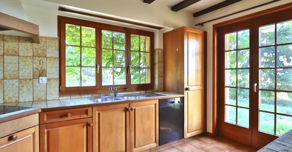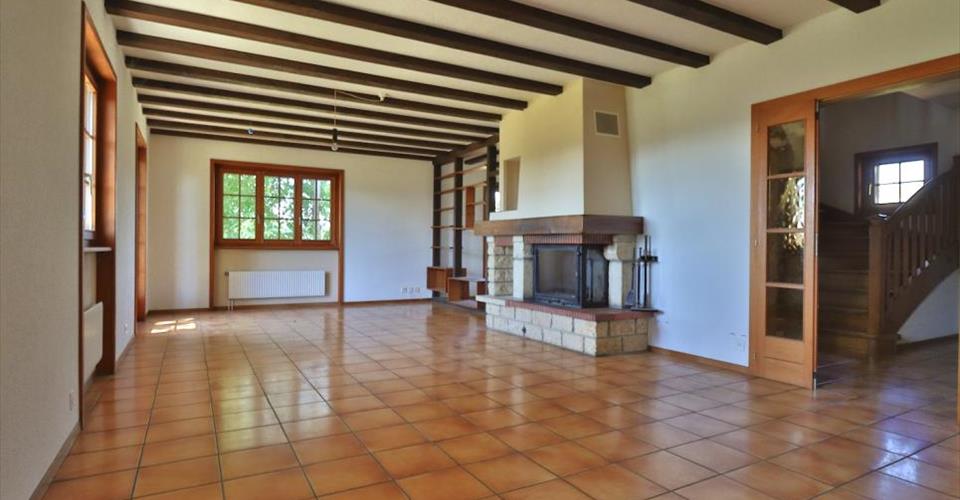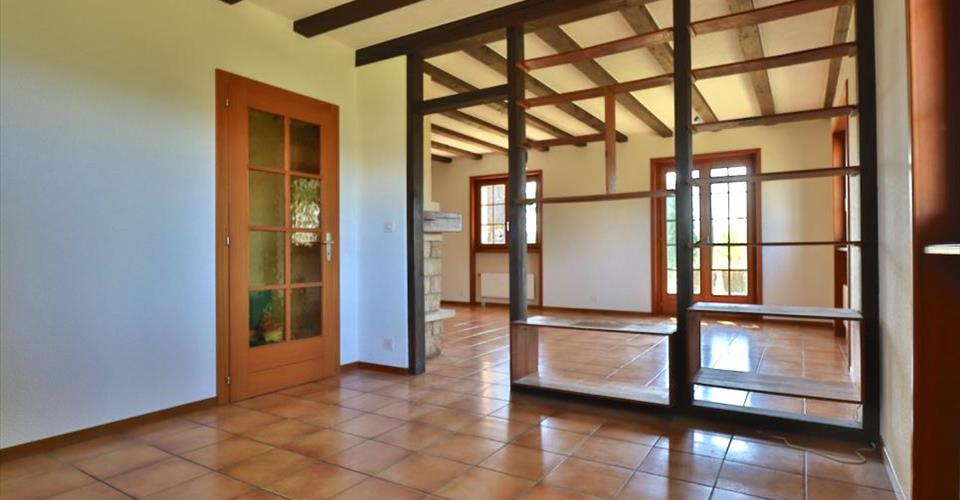 WARPELIN immobilier VOUS PROPOSE : Construite en 1979 sur la commune de Vully-les-Lacs et plus précisément dans le hameau de Constantine, cette villa vaudoise typique de ces années jouit d’un environnement verdoyant et calme. Entourée de parcelles agricoles et bordée par une route principe à faible trafic, elle profite de la sérénité de la campagne tout en restant facilement accessible depuis les grandes villes de la Broye-Vully. Bâtie sur une parcelle de 1’500 m2, ses espaces extérieurs sont généreux mais faciles d’entretien. Depuis la terrasse Sud, une vue magnifique sur la région et le lac de Morat s’offre à ses propriétaires. C’est un endroit paisible dans lequel il est agréable de passer des moments en famille ou entre amis. Répartie sur 4 niveaux distincts, cette maison typique se compose de la manière suivante : Rez-Inférieur : – Un grand hall d’entrée – Une buanderie de 16.00 m2 – Un couloir de distribution – Un local chaufferie (mazout) – Un espace de rangement sous l’escalier – Un local citerne de 9.06 m2 – Une cave à vin de 9.26 m2 – Un garage / atelier de 32.85 m2 – Un abri PC de 7.08 m2 Rez-Supérieur : – Un vaste hall d’entrée de 15.40 m2 – Un WC visiteur avec coin lavabo – Un petit couloir avec armoire murale – Une chambre à coucher de 10.80 m2 avec rangement mural – Une cuisine ouverte de 15.90 m2 avec bar – Un séjour avec cheminée / salle à manger de 33.27 m2 – Un espace bureau de 12.10 m2 attenant au séjour Etage : – Un hall de distribution avec armoires intégrées – Une chambre Ouest de 12.10 m2 avec armoire intégrée – Une chambre Sud-Ouest de 15.00 m2 avec armoire intégrée – Une chambre Sud de 10.00 m2 avec armoire intégrée – Une salle de douche de 5.10 m2 – Une chambre parentale de 23.25 m2 avec salle de bain attenante – Une salle de bain parentale de 8.16 m2 avec baignoire Combles : – Un grand galetas sous toiture de 56.00 m2 Pour le galetas, l’accès se fait par un escalier escamotable depuis le hall de distribution de l’étage. Le chauffage de la maison et la production d’eau chaude sanitaire sont assuré par une chaudière au mazout. La distribution se fait par des radiateurs. Les fenêtres sont équipées de vitrages doubles à GAZ. La maison est dans un bon état général mais des travaux de remise au goût du jour sont à envisager. Pour toute question ou pour une visite sur place, adressez-vous sans délai à l’agence.
