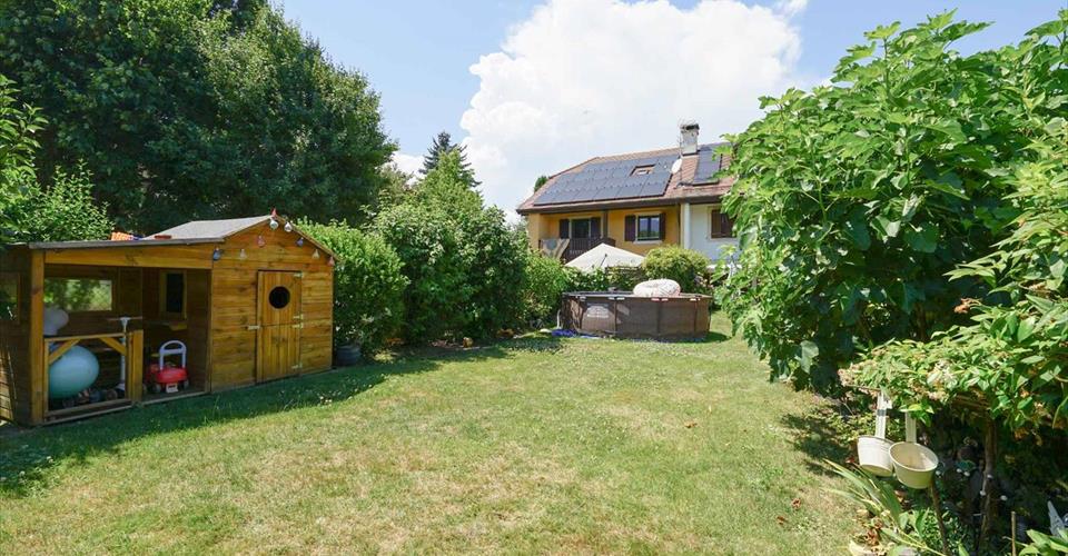 Au coeur de La Croix-de-Rozon (Bardonnex), dans une ambiance villageoise chaleureuse et calme, jolie maison contigüe de 7 pièces, sur 3 niveaux, lumineuse et en excellent état. En plus de son agréable jardinet par lequel on y accède, elle offre une belle terrasse et un jardin clos. Le rez-de-chaussée se compose d’un hall d’entrée avec toilettes visiteurs, une vaste cuisine moderne entièrement équipée ouverte sur le salon/séjour qui dispose d’une cheminée fonctionnelle. Le séjour donne accès à la terrasse et au jardin. Le 1er étage offre 3 chambres, d’une salle de douche à l’italienne et d’une salle de douche avec toilettes accessible par 2 chambres, et de nombreux rangements. Le 2ème étage, mansardé, comprend la chambre parentale, une seconde chambre aménagée d’armoires murales, et une salle de bains avec toilettes. Le sous-sol complet compte 1 vaste pièce pouvant servir de salle de jeux,1 cave, 1 local technique et buanderie, et permet d’accéder directement au double box. Le double box est en sus à CHF 300.00/mois. L’entretien du jardin est assuré par un professionnel et est compris dans la location. La production de chauffage et d’eau chaude est électrique, étant précisé que la maison est équipée de panneaux solaires. Pour tout renseignement complémentaire, veuillez prendre contact avec notre agence de Carouge.