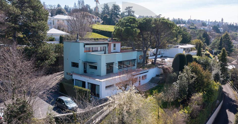 De par ses nombreuses qualités architecturales, typologiques et urbanistiques, Tactica est fière de vous présenter l’une des villas les plus représentatives à Genève du modernisme de l’entre deux-guerres sise sur la commune de Cologny. L’implantation urbaine de la villa “Les Ailes” tient, essentiellement au rapport défini par ses architectes entre l’espace public de la rue et le bâtiment. L’ancrage du bâtiment dans la pente du coteau, la succession des espaces et leur orientation forment des séquences complexes qui ne se comprennent que dans un certain rapport au paysage. Construite en 1932 sur une parcelle de 2197 m2 et entièrement rénovée en 2018, la maison se distribue sur 3 étages et se compose de 5 chambres et 4 salles de bains. Une piscine, un sauna et de nombreuses places de parking complètent ce bien d’exception. L’histoire, l’architecture, la vue, la position et les finitions de haute qualité font de cette propriété un objet exceptionnel et rare.