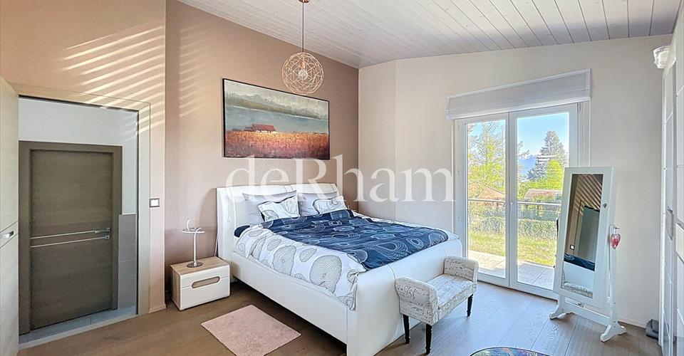 À quelques minutes du centre-ville de Morges, nichée dans un écrin de verdure, cette spacieuse villa de 7 pièces répartie sur trois niveaux offre 220 m² habitables dédiés au confort et à la sérénité. Les volumes généreux, baignés de lumière naturelle et sublimés par des finitions haut de gamme, créent une atmosphère chaleureuse et accueillante, idéale pour partager des moments de convivialité. Depuis les balcons ou le jardin, la vue panoramique embrasse le lac Léman, les Alpes, et s’étend jusquau majestueux Mont-Blanc un spectacle quotidien. Clôturé et entièrement privatif, le jardin paysager, agrémenté d’une piscine, apporte un air de vacances au quotidien, entre détente et raffinement. Le bien est conçu ainsi : – Une entrée avec armoires – Un premier séjour avec accès au jardin – Une cuisine agencée avec un 2ème coin salon et cheminée – Un bureau – WC visiteurs 1er étage: – Deux chambres à coucher – Une salle de bains/WC – Une chambre parentale avec pièce dressing/bureau et salle de bains attenante 2ème étage: – Deux chambres sous combles Sous-sol: – Une cave – Local technique – 1 place extérieure et 1 place extérieure couverte – Charges en sus à CHF 550.-/mois – Contrat d’entretien en sus CHF 250.-/mois