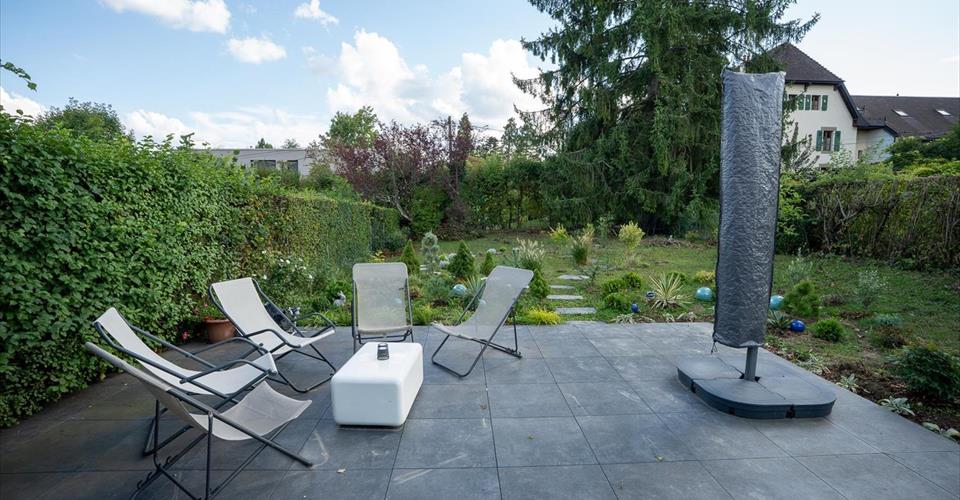 Idéalement située dans la commune prisée de Versoix, cette magnifique maison mitoyenne moderne de 8 pièces et d’environ 340 m² habitables représente un véritable havre de paix. Son emplacement privilégié vous offre un accès direct au Collège du Léman, aux commerces, à la gare et aux transports publics, tout en préservant une tranquillité absolue. Au rez-de-chaussée, vous trouverez un vaste séjour baigné de lumière, avec sa cuisine ouverte et entièrement équipée et un bureau avec sa salle de bains. La propriété dispose de 4 chambres au total, chacune dotée de sa propre salle de bains privative, garantissant intimité et confort à tous les occupants. À l’étage, 4 autres chambres dont deux grandes suites parentales. L’extérieur ne manquera pas de vous séduire, avec un grand terrain de 800 m² et une incroyable terrasse sur le toit de 90 m², parfaite pour profiter des beaux jours et de la vue dégagée. Le sous-sol spacieux offre des possibilités infinies. Il comprend une grande pièce de plus de 60 m² qui peut être aménagée en salle de sport, en salle de jeux ou en home cinéma, selon vos envies. Un petit appartement indépendant, avec sa propre entrée, peut accueillir des invités ou être utilisé comme espace de travail. Pour compléter ce bien d’exception, un double garage vous permettra de stationner vos véhicules en toute sécurité. Son emplacement privilégié vous offre un accès direct au Collège du Léman, aux commerces, à la gare et aux transports publics, tout en préservant une tranquillité absolue. Cette propriété unique est une opportunité rare sur le marché. Pour plus d’informations ou pour organiser une visite, veuillez contacter M. Timothy BENOIT à ou par téléphone Ideally located in the sought-after town of Versoix, this magnificent modern 7-room semi-detached house with approximately 340 m² of living space is a true haven of peace. Its prime location offers direct access to the Collège du Léman, shops, the train station, and public transportation, while maintaining absolute tranquility. On the ground floor, you will find a spacious, light-filled living room with an open-plan, fully equipped kitchen and a bedroom with en-suite bathroom. The property has a total of 5 bedrooms, each with its own en-suite bathroom, ensuring privacy and comfort for all occupants. Upstairs, there are four additional bedrooms, including two large master suites. The exterior is sure to charm you, with a large 800 m² plot and an incredible 90 m² rooftop terrace, perfect for enjoying sunny days and the unobstructed view. The spacious basement offers endless possibilities. It includes a large room of over 60 m² that can be converted into a gym, games room, or home cinema, depending on your preferences. A small independent apartment with its own entrance can accommodate guests or be used as a workspace. To complete this exceptional property, a double garage allows you to park your vehicles safely. Its prime location offers direct access to the Collège du Léman, shops, the train station, and public transportation, while maintaining absolute tranquility. This unique property is a rare opportunity on the market. For more information or to arrange a viewing, please contact Mr. Timothy BENOIT at or by phone at