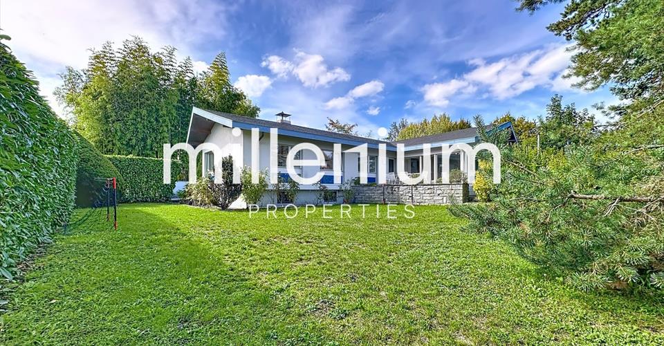 Agence : Millenium Properties SA Réf : KM 2223 Située sur les hauteurs de Versoix, proche du Collège du Léman, dans un quartier résidentiel verdoyant et paisible, cette maison individuelle profite d’une parcelle de 1’091 m² orientée plein sud. Proche des commodités, elle bénéficie d’un cadre privilégié alliant tranquillité et confort de vie. Conservant le charme lumineux des années 60, la propriété a été rénovée avec soin, mettant en valeur des matériaux haut de gamme et des aménagements contemporains. Rez-de-chaussée Hall d’entrée avec vestiaire Cuisine entièrement équipée avec accès direct à la terrasse Vaste salon avec cheminée et parquet, ouvrant sur la terrasse Salle à manger (ou espace bibliothèque) Trois chambres à coucher, dont une spacieuse suite parentale Salle de bains avec double vasque Salle de douche WC visiteurs Rez inférieur Studio indépendant avec cuisine équipée Salle de douche et WC séparé Buanderie équipée avec armoires intégrées Abri PC Grande cave avec rangements Local chaufferie avec système de séchage du linge Extérieurs Jardin privatif entièrement clôturé, agrémenté d’arbres centenaires et d’un potager Belle terrasse idéale pour les moments de détente Grand garage pour une voiture Loyer : CHF 7’500.- Une maison au charme intemporel, alliant caractère et modernité. A visiter sans tarder ! Contact : Kari Marill-Hernandez MILLENIUM PROPERTIES Boulevard du théâtre 5, 1204 Genève https://www.milleniumproperties.ch