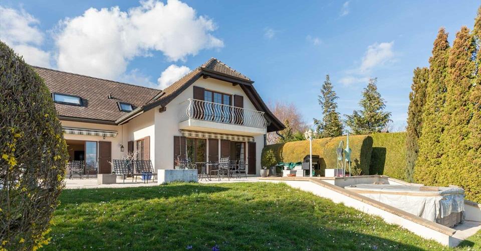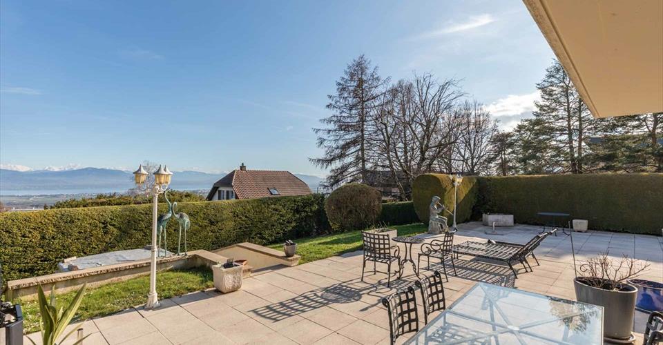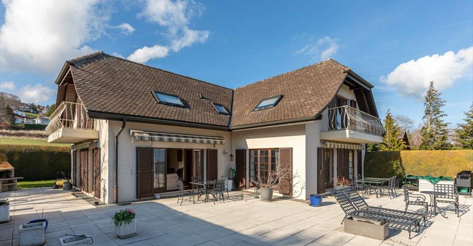 Découvrez cette maison individuelle nichée dans la commune d’Arzier, offrant une vue panoramique imprenable sur le lac Léman. Cette perle rare vous accueille avec ses espaces généreux et sa luminosité éclatante, idéalement située dans les bas du village, où calme et sérénité règnent en maîtres. À l’intérieur, laissez-vous séduire par des pièces baignées de lumière, créant une atmosphère chaleureuse et accueillante. Le vaste volume offre un confort inégalé, parfait pour créer des souvenirs inoubliables en famille et entre amis. Les trois chambres généreuses vous invitent au repos et à la détente. Deux balcons, chacun exposé différemment, offrent des panoramas enchanteurs sur les environs, permettant de profiter de la nature environnante à tout moment de la journée. Le jardin luxuriant et la terrasse ensoleillée constituent des havres de paix, parfaits pour les douces soirées d’été. Ajoutez à cela un jacuzzi, et vous avez l’endroit idéal pour vous détendre et vous ressourcer en toute intimité, en contemplant les étoiles scintillantes au-dessus du lac. Cette demeure bénéficie d’une rénovation récente, qui respecte l’environnement. Dotée d’une pompe à chaleur et d’une isolation écologique, elle vous offre un cadre de vie durable et éco-responsable, en harmonie parfaite avec la nature environnante. Ne manquez pas cette opportunité unique d’acquérir un coin de paradis au cœur du village d’Arzier. Contactez-nous dès aujourd’hui pour planifier votre visite et laissez-vous charmer par le charisme inégalé de cette demeure d’exception. Située sur les hauteurs de Nyon, la charmante commune d’Arzier se trouve dans un magnifique cadre de verdure et au calme absolu. Les entrées d’autoroute (Nyon et Gland) sont à seulement 10 minutes en voiture. Accès facile à la gare de Nyon, grâce au petit train qui relie Arzier à Nyon avec des correspondances pour Genève et Lausanne.