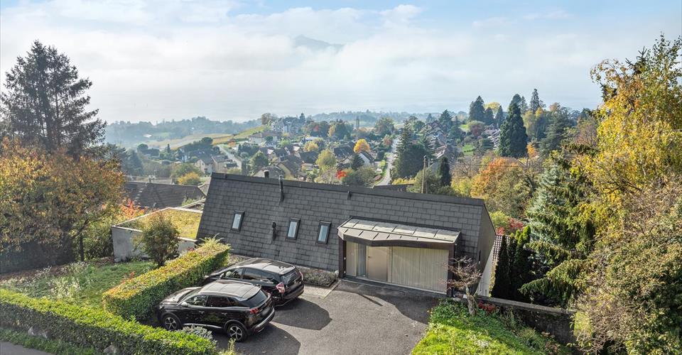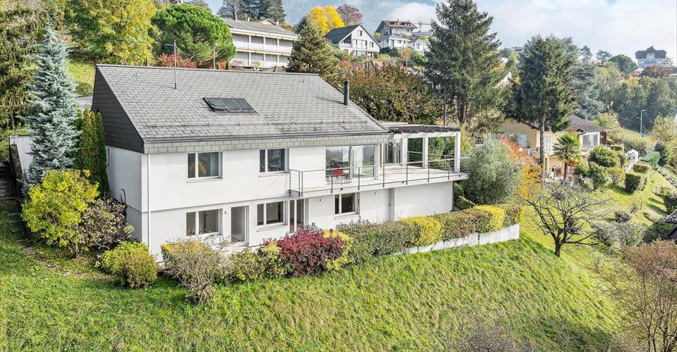 BAISSE DE PRIX Nichée sur une parcelle de 1’000 m², cette propriété de 8,5 pièces domine un quartier verdoyant et offre une vue panoramique sur le Léman et les Alpes. Construite en 1963, cette maison individuelle se distingue par son architecture s’élevant sur trois niveaux inversés. Composée de 6 chambres, elle a été entièrement rénovée en 2011 dans un style contemporain. Très bien entretenue depuis, elle ne nécessite pas de travaux complémentaires. Avec une surface utile d’environ 320 m², cette maison séduira les passionnés d’espace, grâce à ses multiples baies vitrées qui baignent les intérieurs de lumière. À l’extérieur, un grand deck rénové en 2021 est une des plus value de cette propriété, d’où vous profitez d’une vue spectaculaire sur le lac et les montagnes. Ce cadre enchanteur est également accessible depuis la terrasse du rez-de-jardin. Un sauna, un dressing, une cave à vin, un garage et 3 places de stationnement extérieures viennent parfaire l’ensemble. C’est avec plaisir que je vous montrerai cette magnifique villa lors d’une visite personnelle.