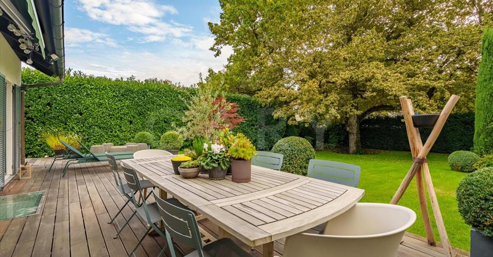 Située sur la commune de Chêne-Bougeries, cette charmante maison familiale est idéalement positionnée proche du centre ville et de l’école internationale. La villa est en excellent état et se présente de la manière suivante : Au rez-de-chaussée, se trouve une chambre avec une salle de douche complète attenante, une cuisine moderne de marque Varenna avec un accès direct à une terrasse, une salle à manger accueillante, ainsi qu’un spacieux salon agrémenté d’une cheminée qui s’ouvre sur un magnifique jardin paysagé. À l’étage, une suite parentale avec dressing et salle de bains complète, accompagnée de trois autres chambres dotées d’armoires encastrées et une salle de bains complète. Le sous-sol de la maison renferme des commodités pratiques, notamment une cave à vin, une salle de jeux, une buanderie et une salle technique, un abri de protection civile, ainsi qu’une cave et de nombreux espaces de rangements. Le jardin, parfaitement entretenu, est équipé d’un système d’arrosage automatique ainsi que d’éclairages. De plus, la maison dispose d’un garage fermé pouvant accueillir deux véhicules ainsi que des places de parc extérieur.