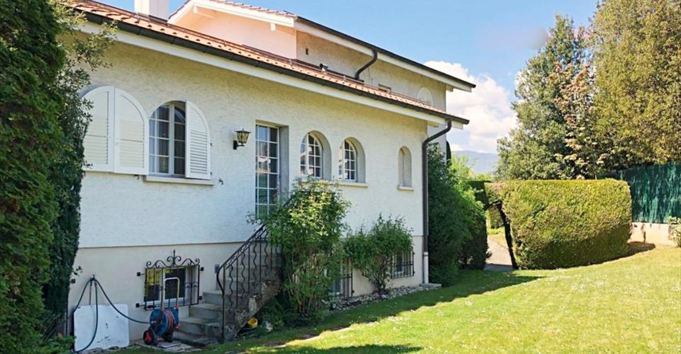 Charmante villa individuelle à Founex avec grand potentiel et travaux à prévoir Située dans un quartier résidentiel calme et verdoyant, cette villa individuelle bénéficie d’un emplacement idéal, à quelques minutes à pied de l’école de La Châtaigneraie, et offre un cadre de vie paisible et agréable, tout en restant proche des commodités. Construite en 1980, cette maison lumineuse et spacieuse séduit par ses volumes généreux et son charme indéniable. Elle offre un espace de vie confortable réparti sur plusieurs niveaux, parfait pour accueillir une grande famille ou recevoir des invités. Bien que des travaux de rafraîchissement soient à prévoir pour la mettre au goût du jour, cette propriété représente une opportunité unique pour les amateurs de belles demeures souhaitant créer un intérieur à leur image. La parcelle d’une surface de 1’398 m², entièrement arborée, garantit intimité et tranquillité, tandis que l’intérieur de 250 m² habitables est organisé de manière fonctionnelle et conviviale. Avec ses 8,5 pièces, dont 5 chambres et plusieurs espaces de vie, cette villa offre des possibilités multiples pour répondre aux besoins de ses futurs occupants. Caractéristiques principales : Année de construction : 1980 Surface de la parcelle : 1’398 m² Volume : 1’336 m³ Surface habitable : 250 m² Nombre de pièces : 8.5 Nombre de chambres : 5 Nombre de salles de bains : 3 Nombre de salles de douche : 1 WC visiteurs : 1 Type de chauffage : Mazout Parking : Garage double et 3 places extérieures Distribution intérieure : Rez-de-chaussée : Vous serez accueilli par un hall d’entrée qui dessert un vaste séjour baigné de lumière, une salle à manger conviviale et une cuisine fermée. Ce niveau comprend également un WC visiteurs, un bureau, une chambre ainsi qu’une salle de bains. 1er étage : Il dispose de deux chambres, dont une suite parentale avec sa salle de bains attenante, ainsi qu’une salle de douche. Sous-sol : Cet espace offre une grande pièce polyvalente, deux chambres supplémentaires, une salle de bains, une buanderie, un local technique, un garage double, ainsi qu’un abri antiatomique. Atouts supplémentaires : Cette maison bénéficie d’un emplacement privilégié dans une zone résidentielle très recherchée, à seulement cinq minutes à pied de La Châtaigneraie et à proximité des accès autoroutiers. La belle hauteur sous plafond, la grande parcelle arborée et les multiples espaces de vie intérieurs et extérieurs ajoutent au confort et à l’attrait de cette propriété. Prix de vente : CHF 3’200’000.-